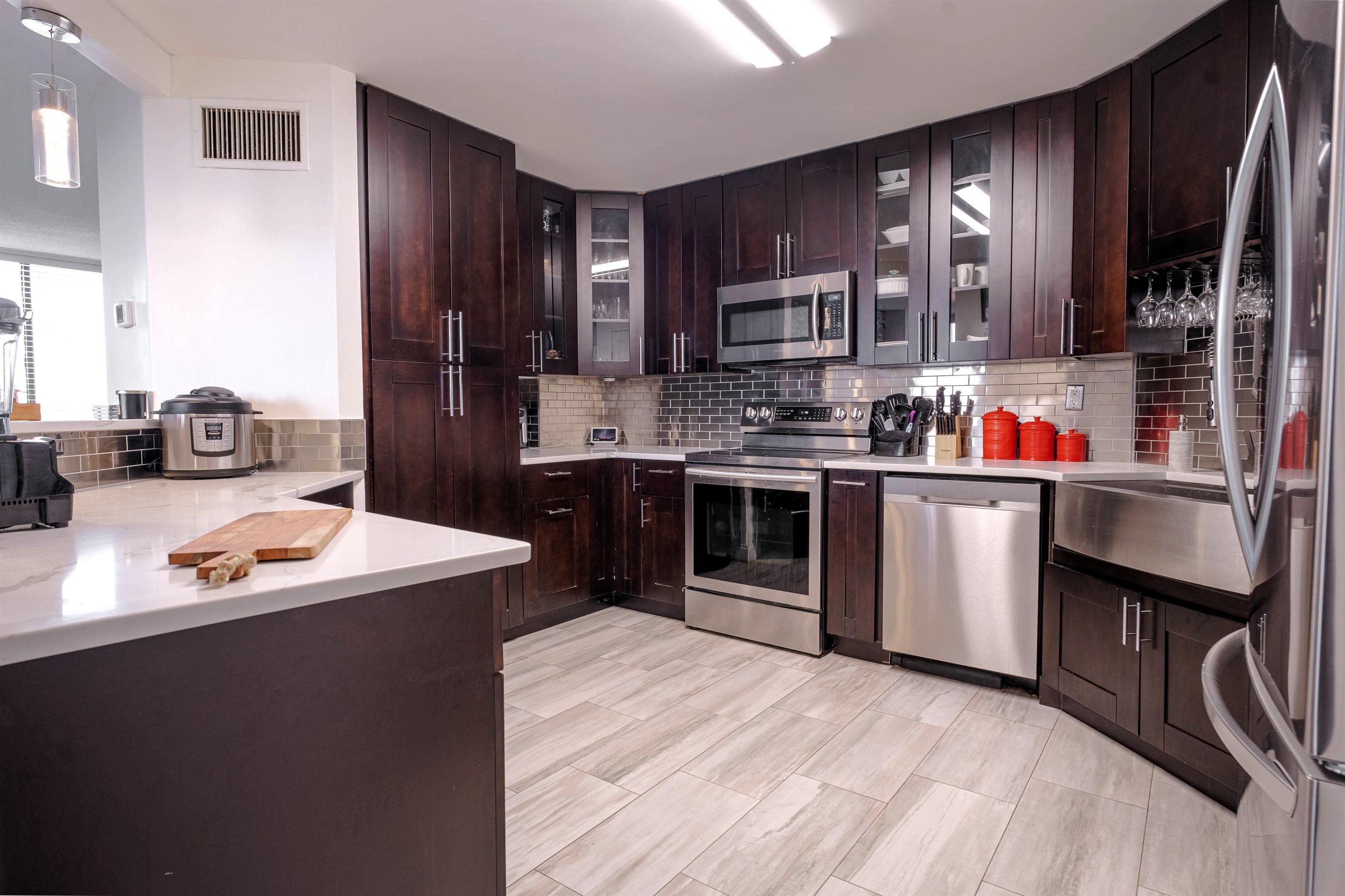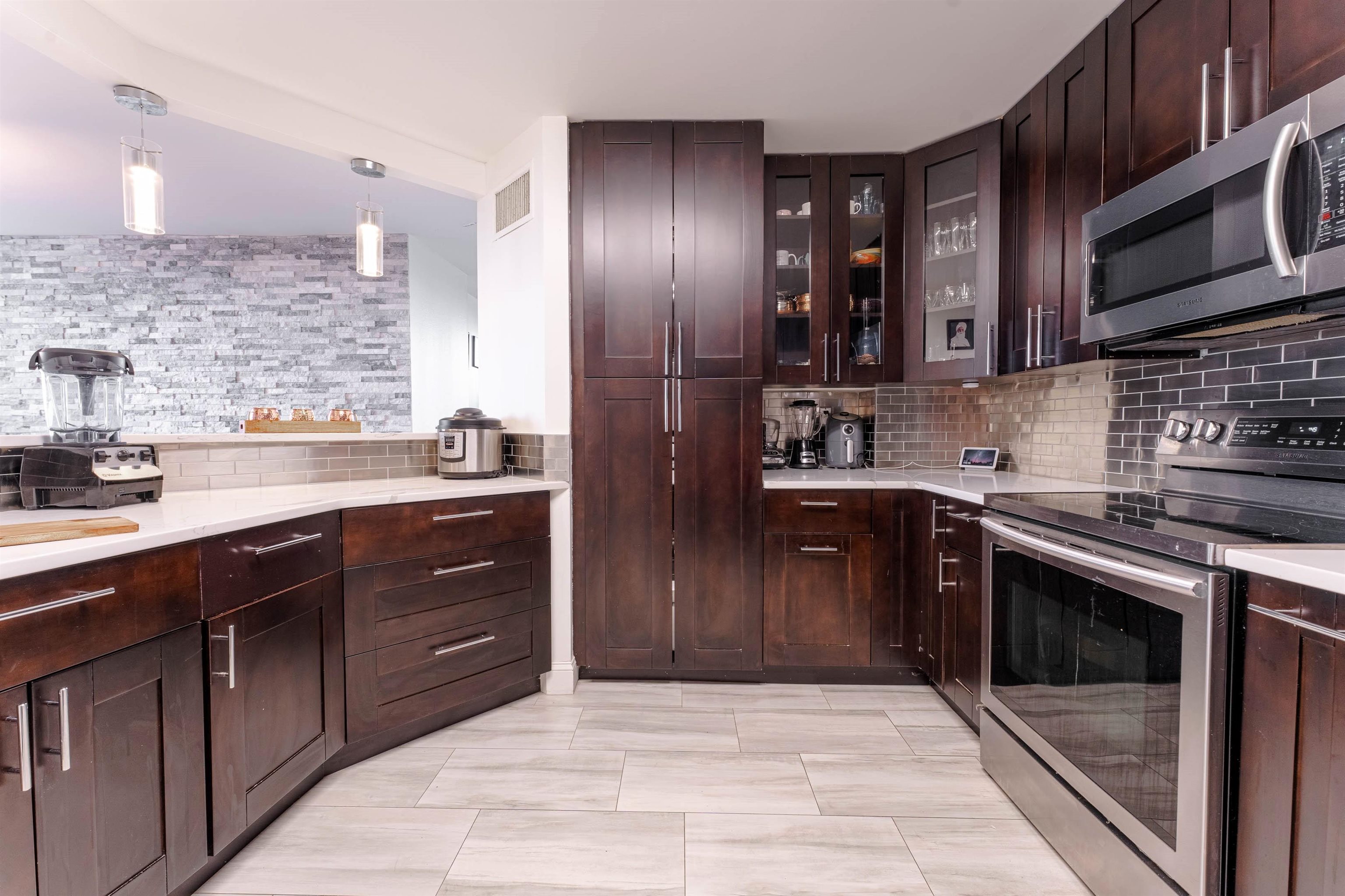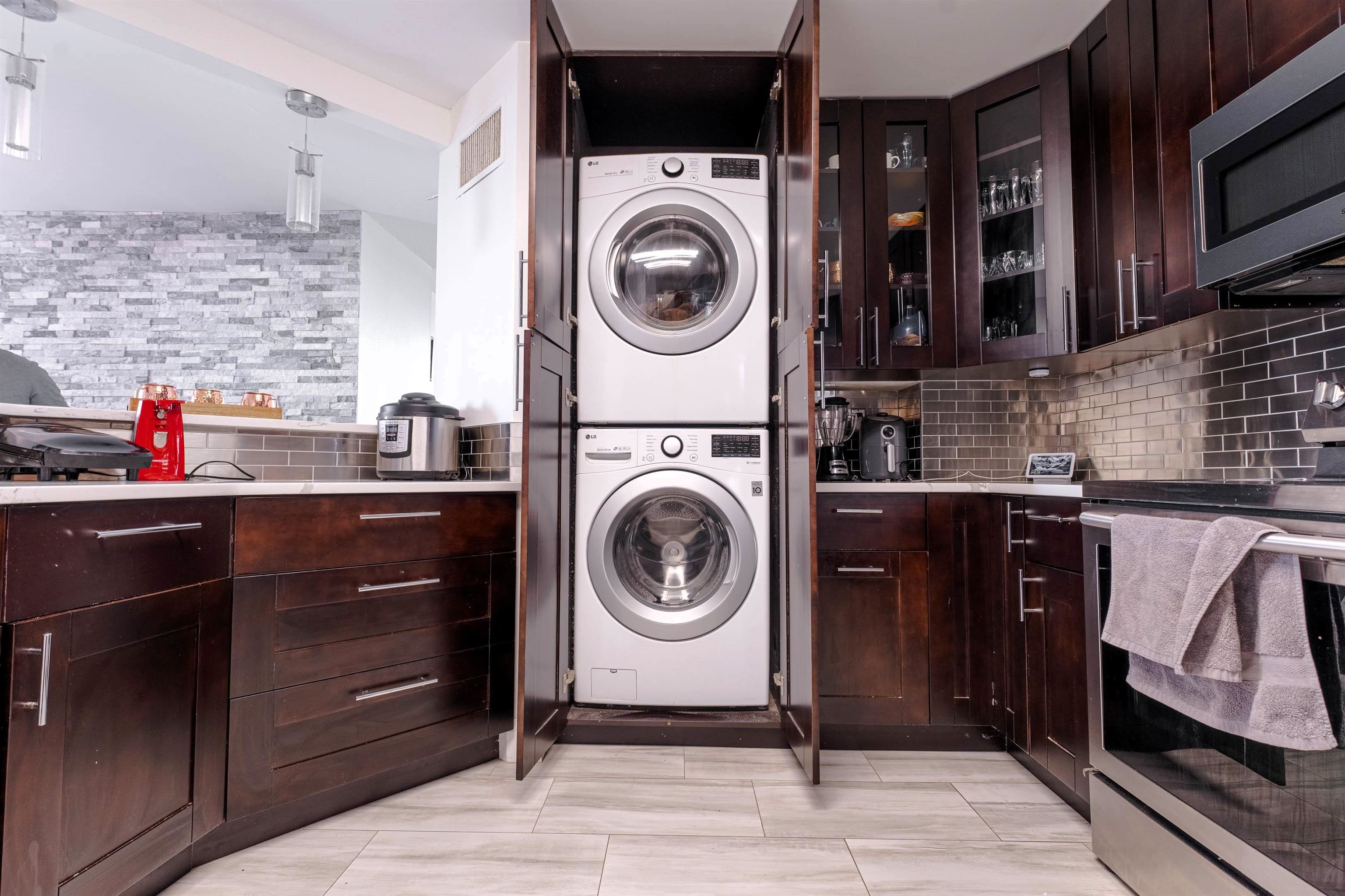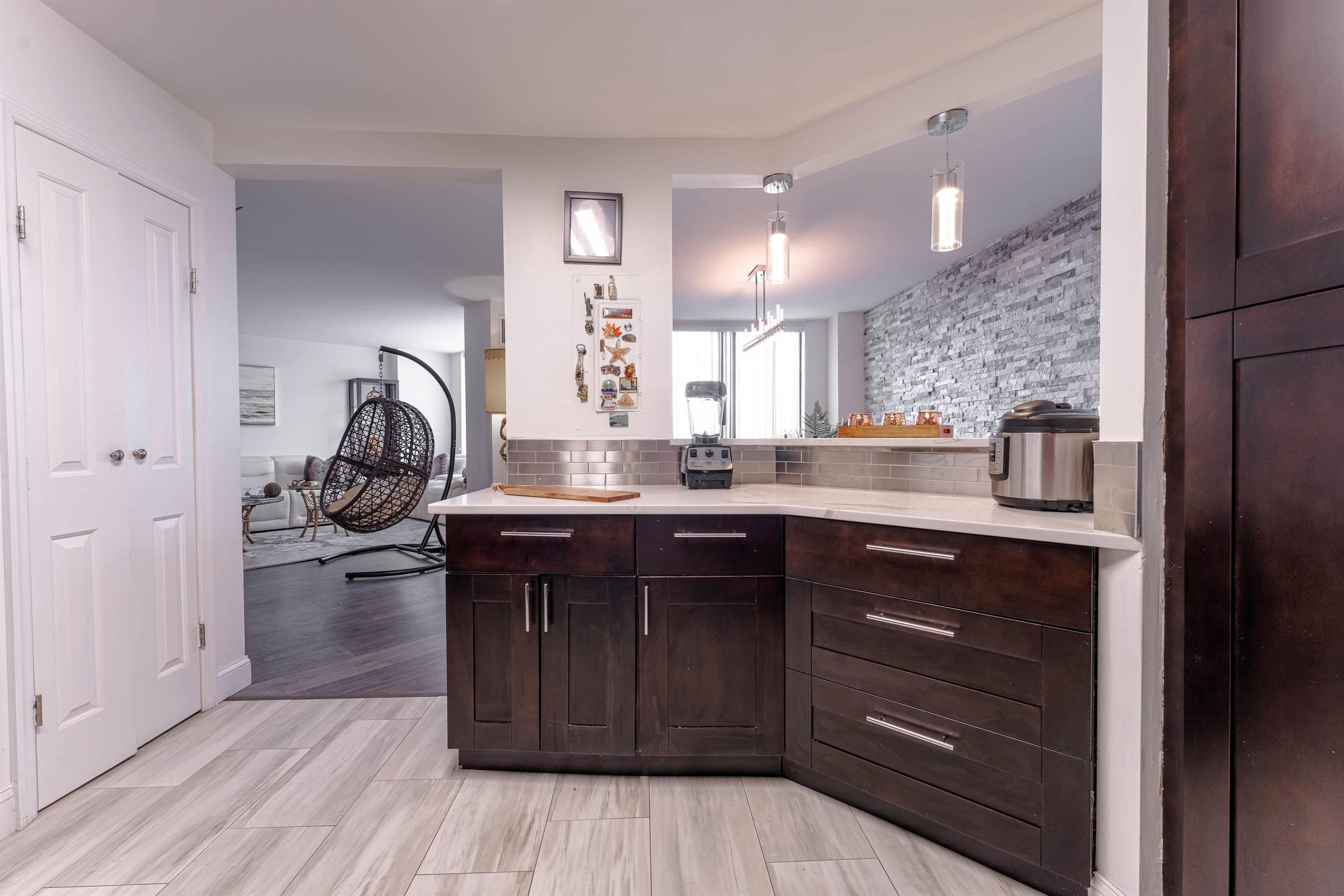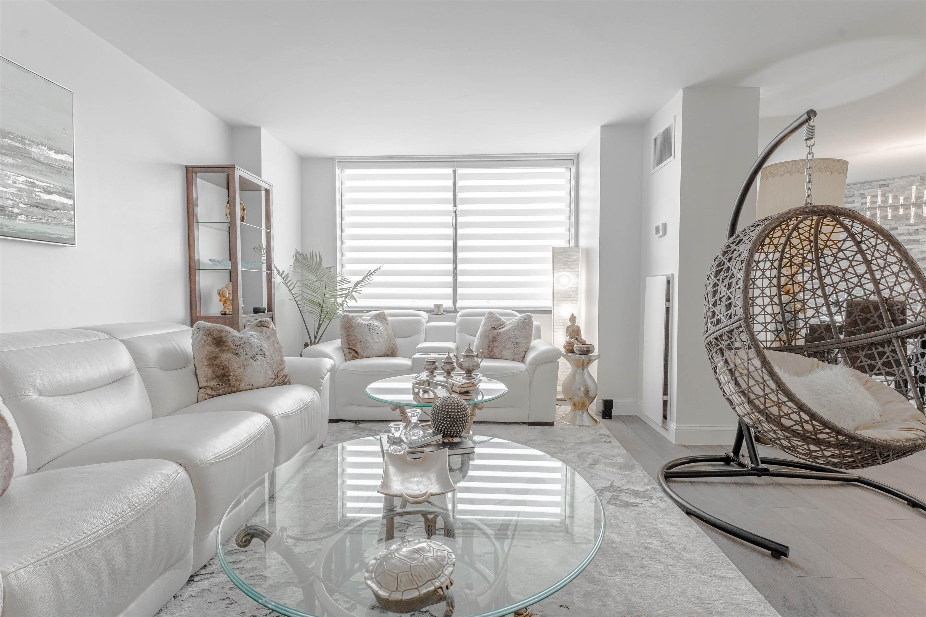 Experience luxury redefined in this stunning 1,842 sq. ft. duplex w/ spacious 3 Bedrooms 2.5 Bathrooms + an expansive Loft area at Harmon Cove Towers. Meticulously renovated by an artist, this contemporary residence blends sophisticated design with premium materials. The expansive open-concept main floor features oversized living and dining areas, coat closet, stunning powder room (Half bathroom), a sleek wet bar, and a sensational chef’s kitchen boasting breakfast bar, custom soft-touch cabinetry, massive quartz countertops, a designer stainless steel backsplash, stainless steel appliances, designer porcelain shimmer tiles, farmhouse sink & pantry. Open dining area w/ Floor- to- ceiling glass sliders lead to a walk-out terrace with spectacular sunset views over the Hackensack river- Perfect for entertaining! The upper level features a versatile loft—perfect for a home office or yoga studio/ Kids play area. Spoil yourself in the high-end Master bed room suite, upstairs, w/ custom Walk-in closet, linen closet & stylishly Renovated Artist designed Master bthrm w/ & customized floating vanity (Double sink), linen closet & a private terrace. 2nd bdrm has a 2nd full bath attached w/ a floating vanity & 3D tiles. Convenient Main floor Bedroom ideal for older parents offers ultimate flexibility! Water-resistant laminate wood floors, custom blinds throughout, new light fixtures, and smooth ceilings (no popcorn) in the foyer, living room, dining room & kitchen. Very bright, Central A/C, In-Unit Washer/ dryer, Ample closets & one indoor parking space comes w/ the unit. Harmon Cove Towers is a beautiful complex w/ resort style living /amenities incl in HOA- 24 hr drmn/concierge, security, elevators, pool w/ cabanas, kids pool, a state-of-the-art fitness center, locker room, sauna & steam rm, bike room, basketball/tennis courts, Kids playroom, Game rm, Dog Park, Play area etc. An absolute commuter’s delight, express NJ transit bus stop under the building and proximity to NJ Transit/ Secaucus Junction. Quiet town w/ great schools, restaurants, parks, sports field, town pool, recreation center, stores etc. Great location close to NJ Turnpike, Route 3 & Newark Airport, 20 minutes or less to NYC, MetLife Stadium & American Dream Mall. This duplex feature bespoke details, sophisticated design aesthetic, Elevated living- Enjoy high-end finishes, & top-tier amenities. Your perfect retreat near NYC. Owner is a licensed realtor.