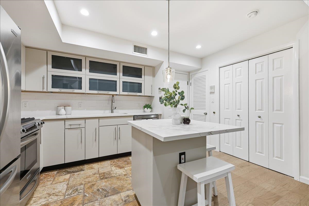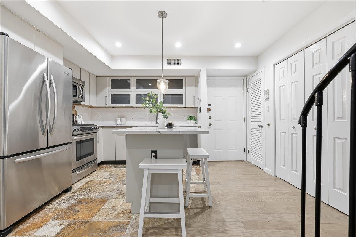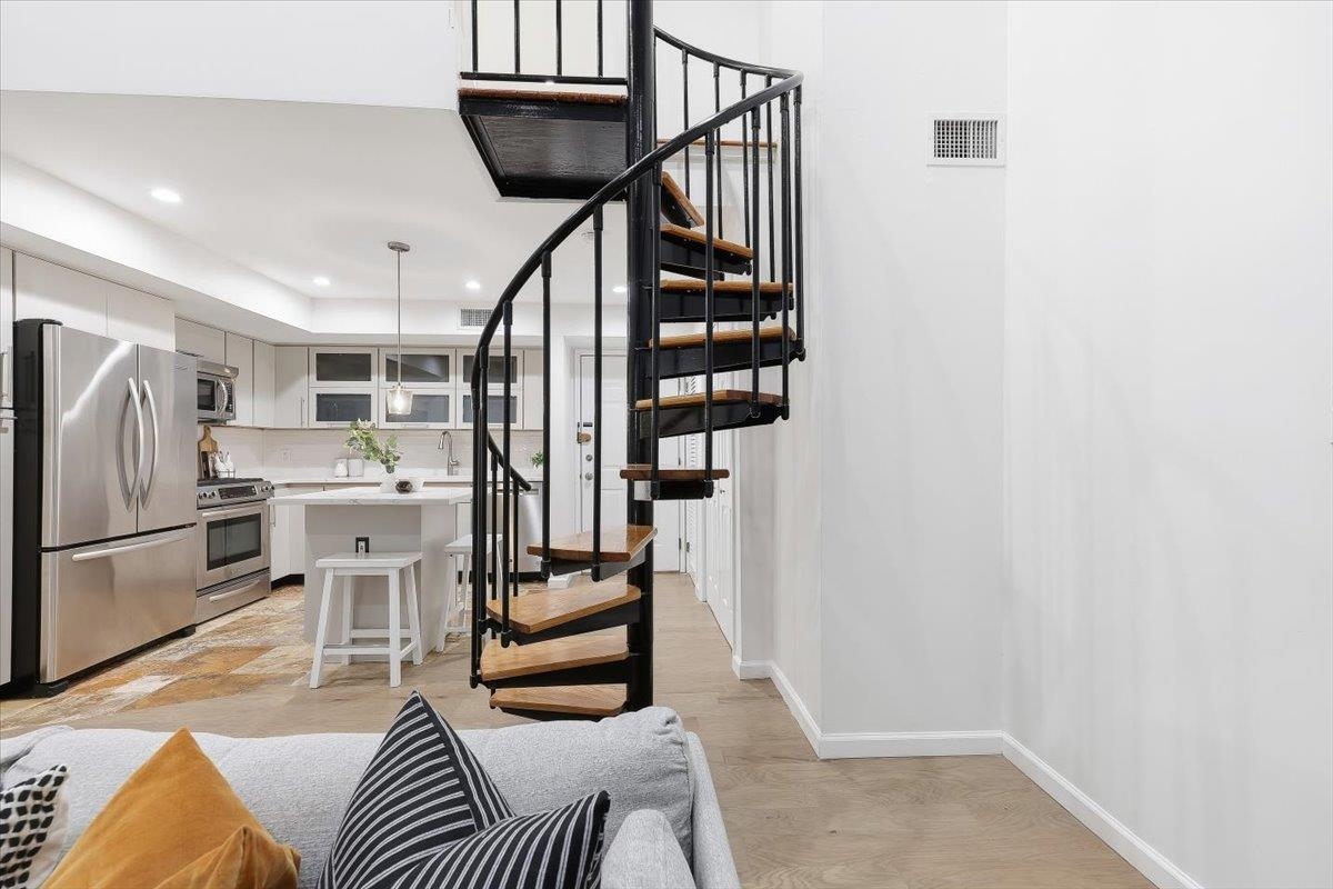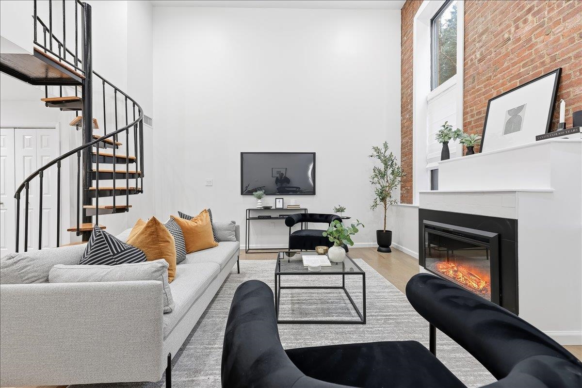 Welcome to 818 Jefferson Street, a beautiful 1 bedroom, 1 bathroom loft duplex with gated parking in Hoboken. This recently renovated condo features central AC, high ceilings, and brilliant natural light. The modern kitchen is complete with quartz counters, custom cabinets, stainless steel appliances, a breakfast bar, and great storage. The living room is open to the kitchen and boasts soaring ceilings, huge windows, and an electric fireplace. Upstairs you will find the bedroom and bathroom. There is a spacious closet and a huge storage space on this level. The building features an elevator, gym, laundry room, a huge private storage space, and 1 parking space. There is a garage next door for additional parking. Located close to parks, restaurants, and PATH, and within a few blocks of ShopRite, the bus to NYC, and the light rail, this Hoboken address offers the perfect mix of city convenience and neighborhood charm. This must-see property blends comfort, style, and convenience in one of Hoboken’s most desirable neighborhoods!