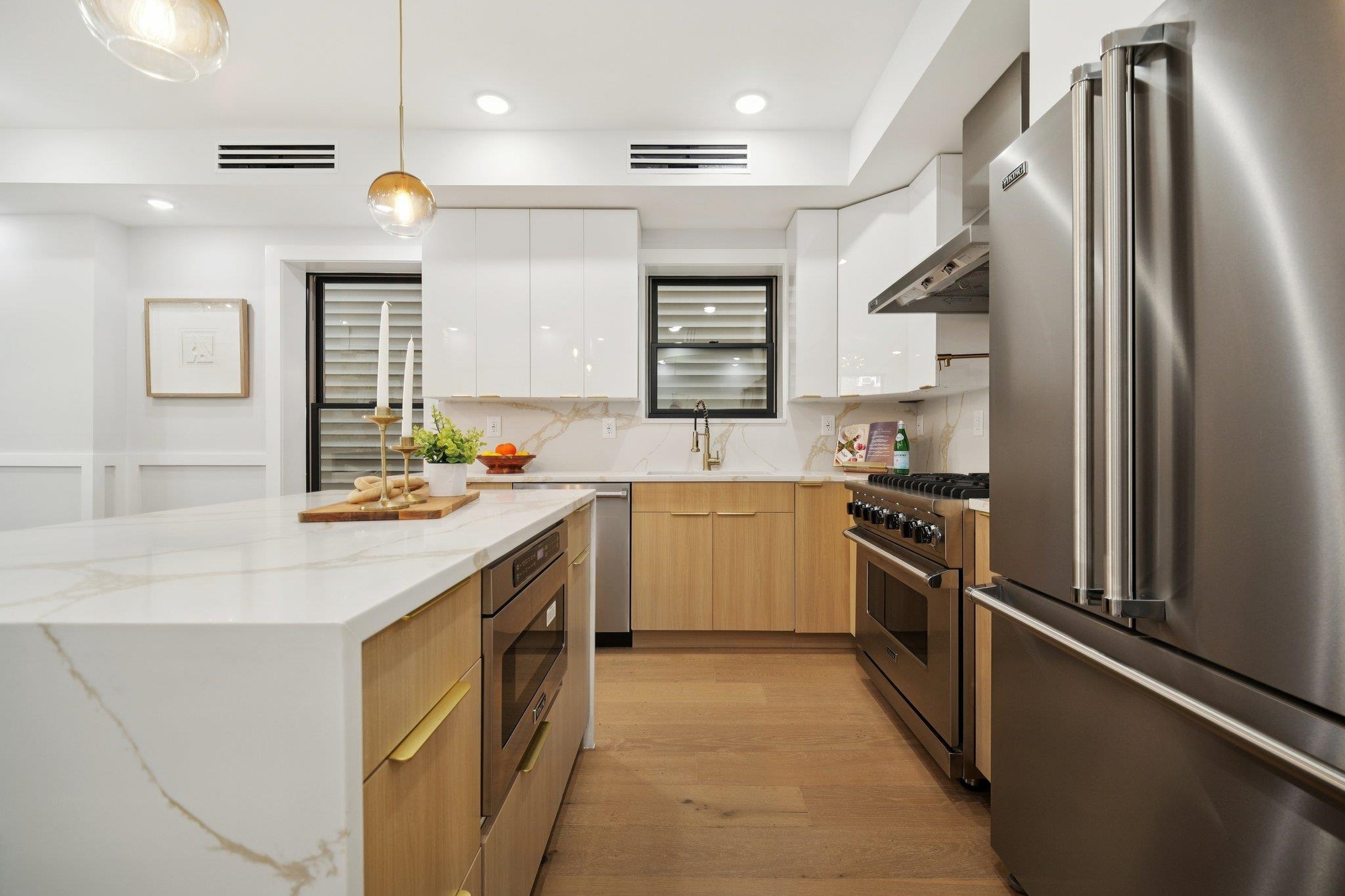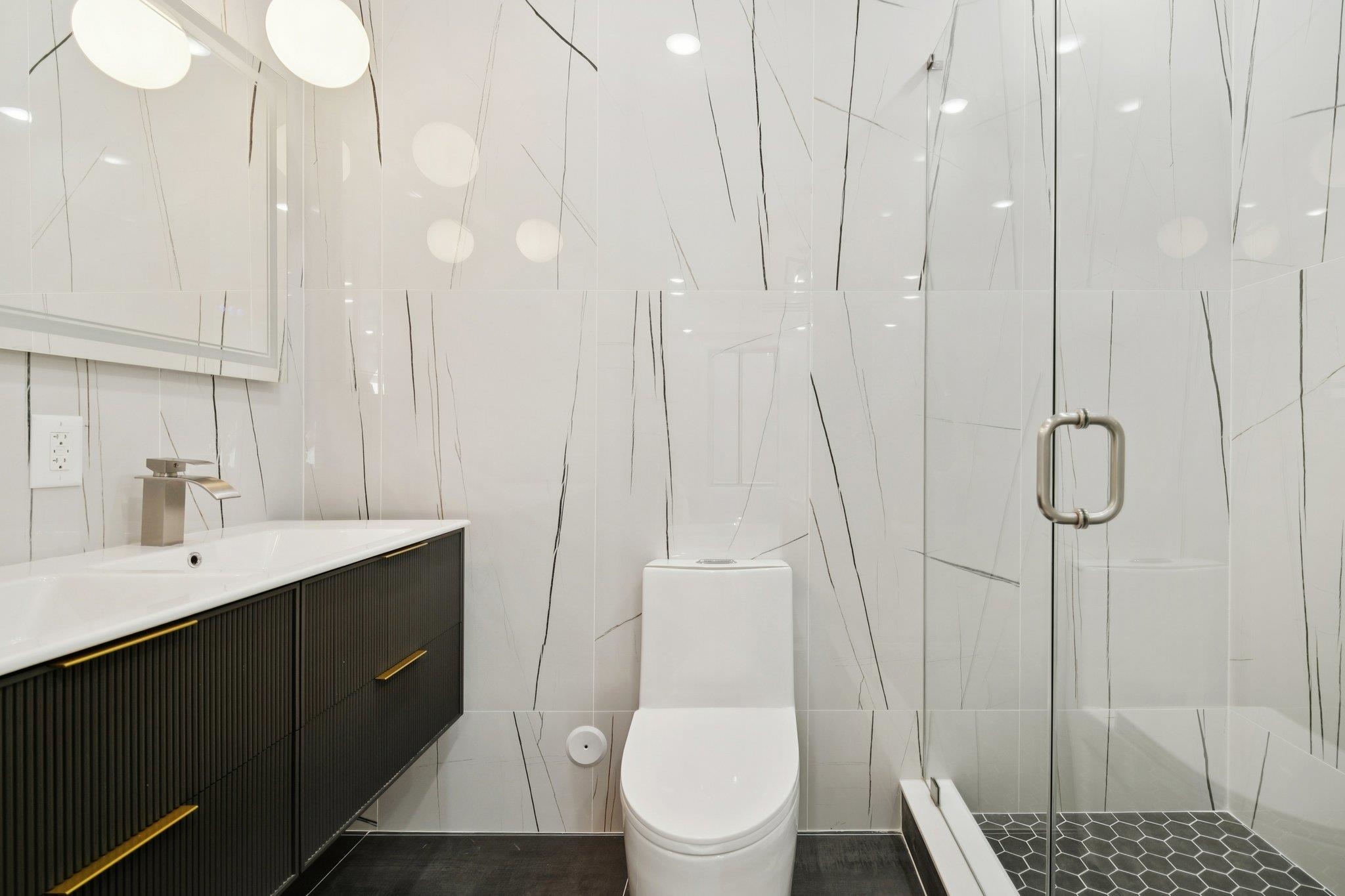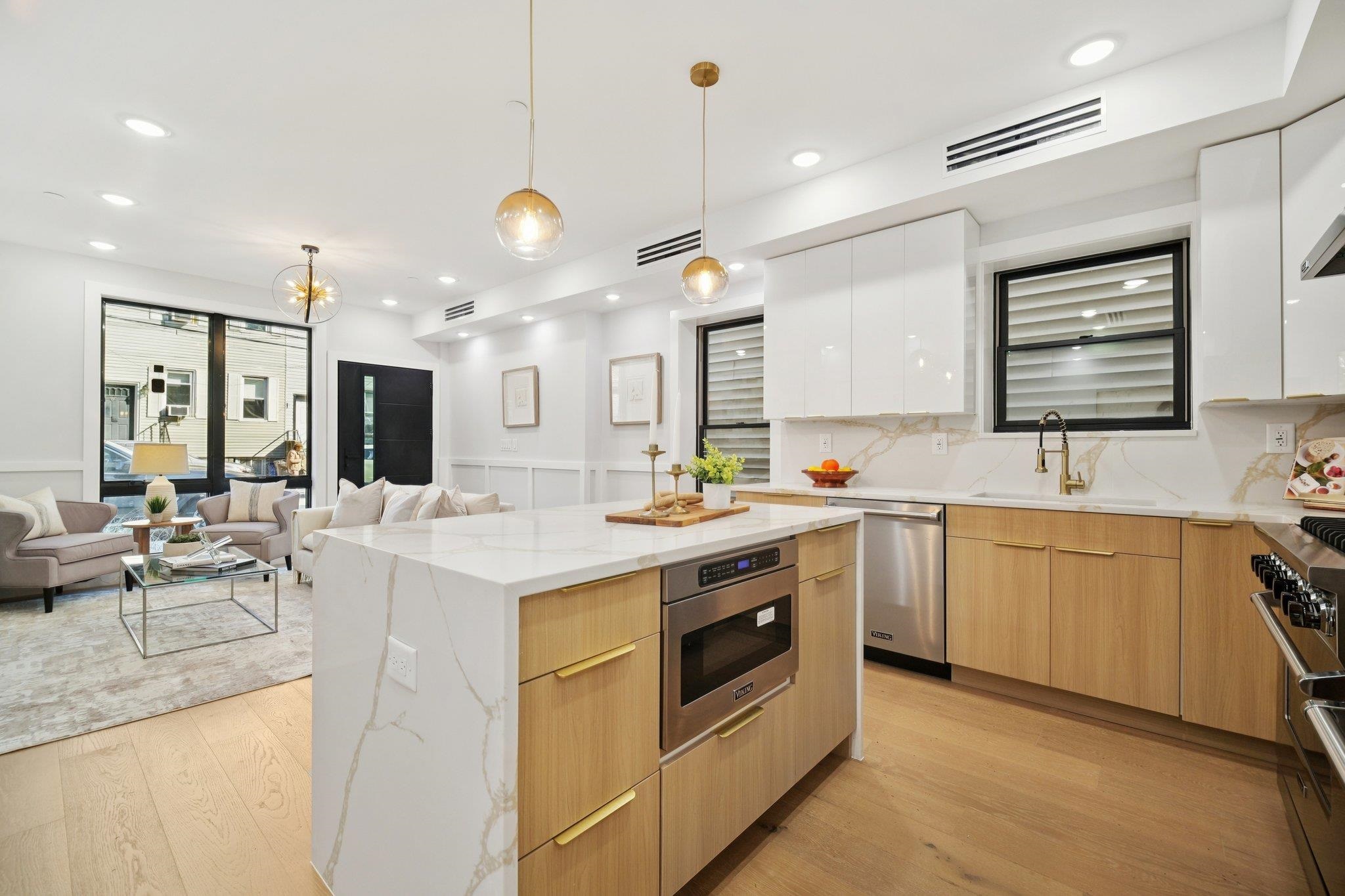 Welcome to this exceptional brand-new construction residence situated on one of Jersey City Heights’ most sought-after streets. An impressive 1,178 square feet, this thoughtfully crafted three-bedroom, two-bathroom home perfectly blends modern elegance with everyday comfort. Step inside to an open-concept living and dining area, light-finished 6″ wide-plank hardwood floors, oversized Anderson windows, and an 8-foot custom entry door package create an immediate sense of style and sophistication. Anchoring the space is a bespoke electric fireplace, offering warmth and ambiance for both relaxing evenings and lively gatherings. The chef’s kitchen is a true showpiece, designed for both function and flair. Outfitted with custom soft-close cabinetry, a walk-in pantry, quartz countertops, and a designer quartz backsplash, it is centered around a generous island perfect for casual dining and entertaining. A full suite of premium VIKING appliances completes the space, providing professional-grade quality for culinary enthusiasts. Retreat to the primary suite oasis, featuring a custom walk-in closet and a spa-inspired en-suite bath with a contemporary rain shower and sleek designer finishes. Two additional well-proportioned bedrooms offer oversized custom closets, ideal for guests, family, or a home office. Additional highlights include garage parking availability, central heating and cooling, and premium finishes throughout. Perfectly located, this home places you within moments of NYC transportation, neighborhood parks, local cafés, dining destinations, and cultural hot spots that define the vibrant Jersey City Heights lifestyle. This is more than a residence—it’s an opportunity to experience elevated living in one of Jersey City’s most desirable neighborhoods. GARAGE PARKING AVAILABLE.
