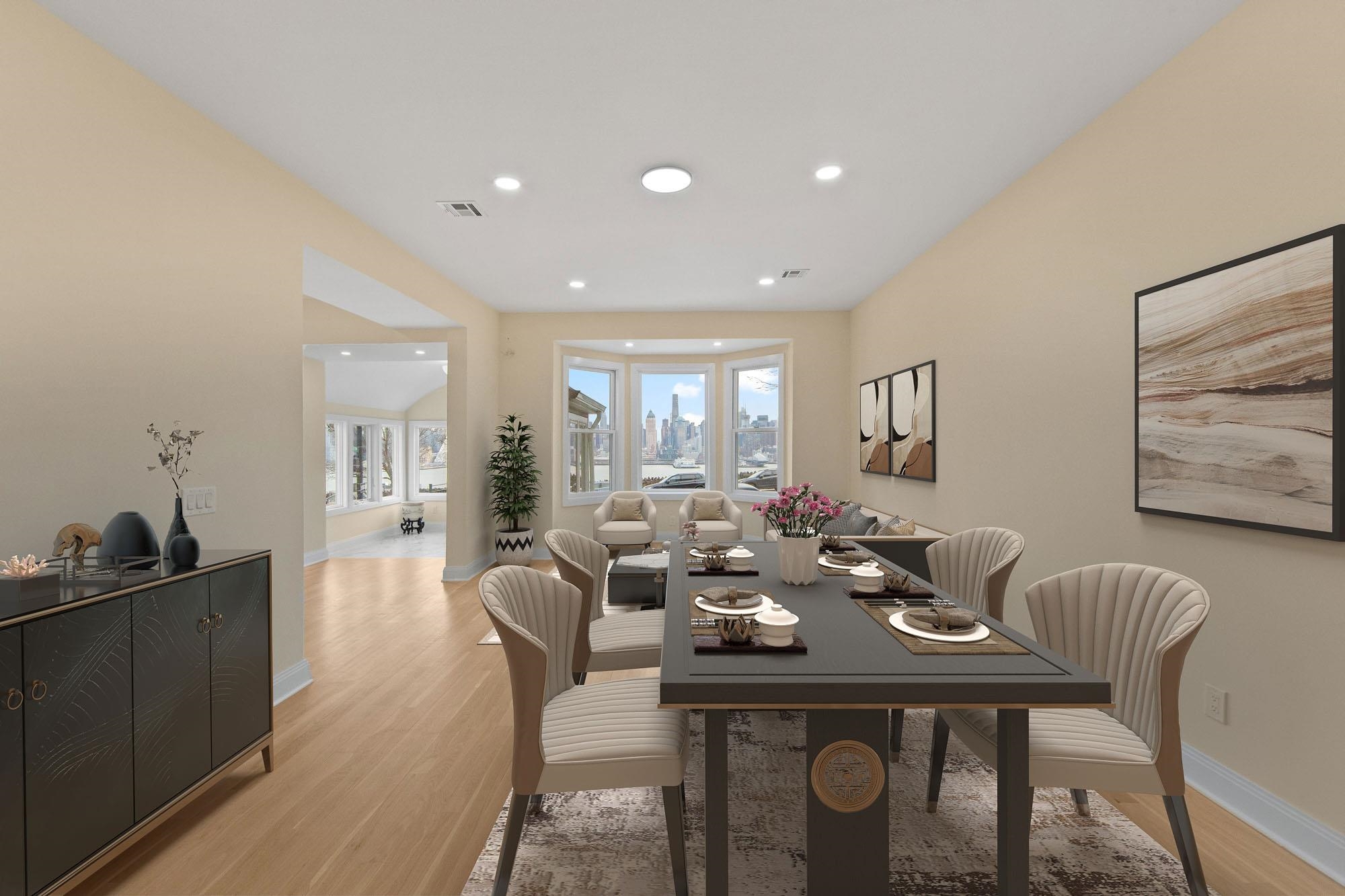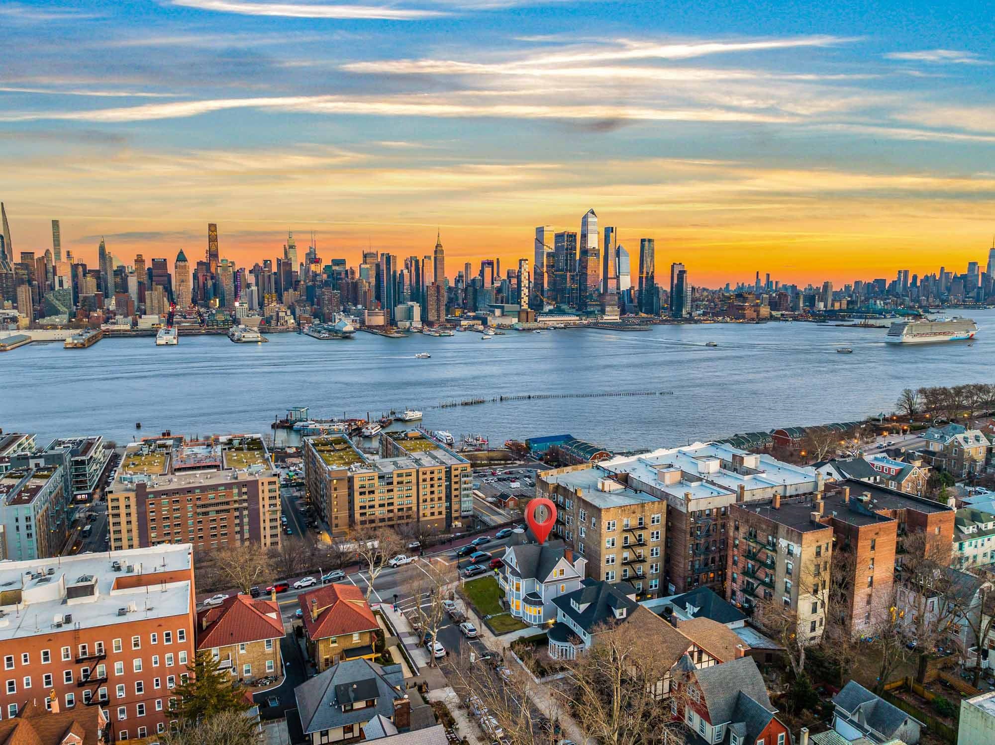 This like-new residence in highly desirable Weehawken presents a rare opportunity for extended-family living or a savvy investment. The home features eight bedrooms and four full bathrooms across three separate units, each with its own private entrance. Highlights include new hardwood and tile flooring, recessed lighting throughout, and gourmet kitchens outfitted with top-of-the-line appliances. The main unit occupies the first and second floors and offers three bedrooms and two full bathrooms. The third-floor apartment includes three bedrooms and one full bathroom, while the basement apartment provides two bedrooms and one full bathroom. An east-facing orientation captures stunning sunrise and moonrise views. Additional features include a driveway, attached garage, and an unbeatable location just minutes from the ferry and Lincoln Tunnel, making commuting effortless.