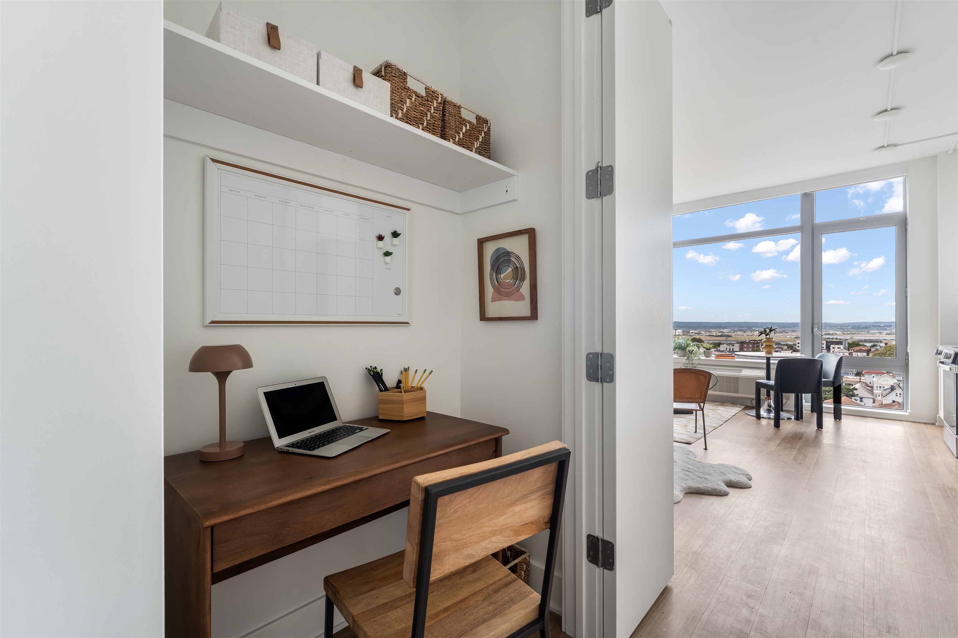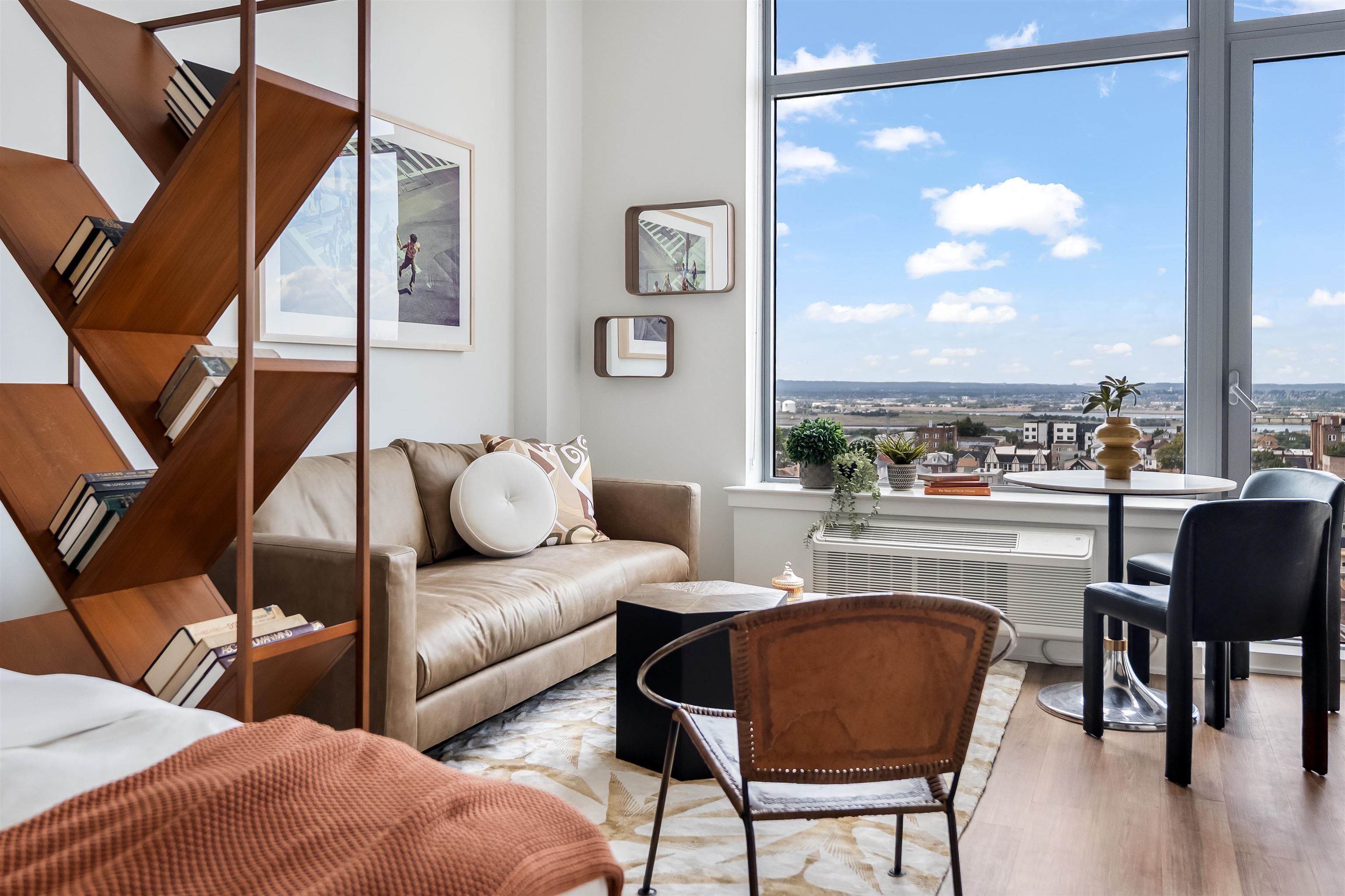North Bergen’s newest luxury address in the prestigious Woodcliff neighborhood. Perfectly positioned across from James J. Braddock Park, every home frames inspiring vistas of the Manhattan skyline and the Meadowlands, fusing modern design with resort style comforts in an unbeatable setting. Start your day with sunrise views, breeze through remote work in stylish co working lounges and private meeting rooms, then unwind in the rooftop resident lounge where panoramic city lights meet a crackling fire-pit. A full time concierge welcomes you home, while an indoor parking garage, rentable storage, and high speed Smart WiFi keep life effortless. Wellness feels easy with a state of the art fitness center, dedicated boxing room, and direct access to miles of park paths just outside your door. Four legged friends enjoy their own spa and a dog park literally steps away. Inside each residence, gourmet kitchens showcase quartz countertops and energy efficient stainless steel appliances, opening to airy living spaces crowned by ten foot ceilings. Floor to ceiling windows flood interiors with light, custom blinds offer instant privacy, and select homes extend onto private outdoor terraces. Oversized closets with built in shelving tame every wardrobe, while solid cement construction and enhanced soundproofing preserve quiet serenity. Central air conditioning, in unit washers and dryers, and seamless connectivity throughout every corner ensure comfort is never compromised. Pet friendly, parkside, and perfectly connected, Braddock Park West isn’t just an address it’s a lifestyle. Schedule your personal tour today and experience luxury living, brilliantly redefined.