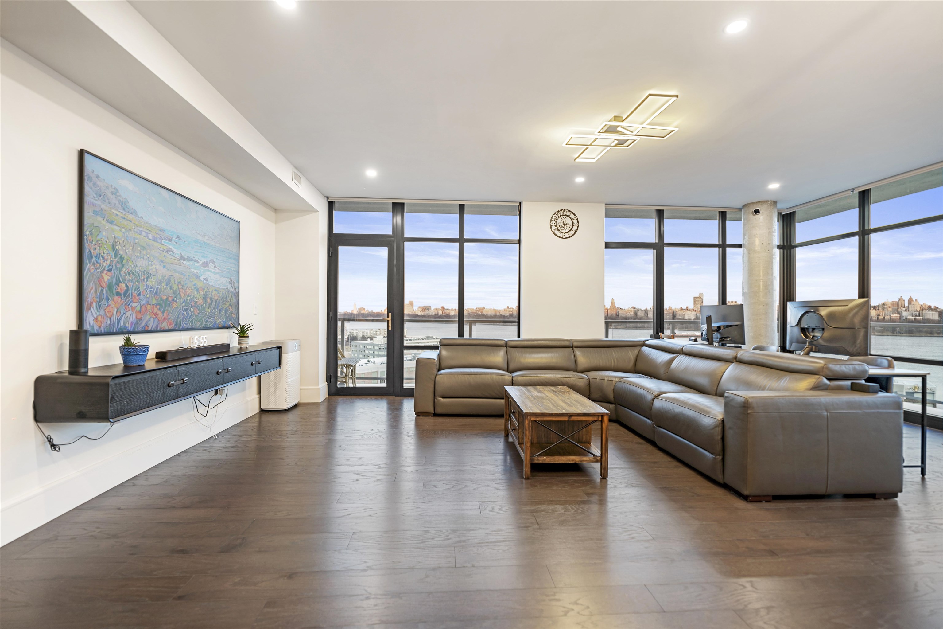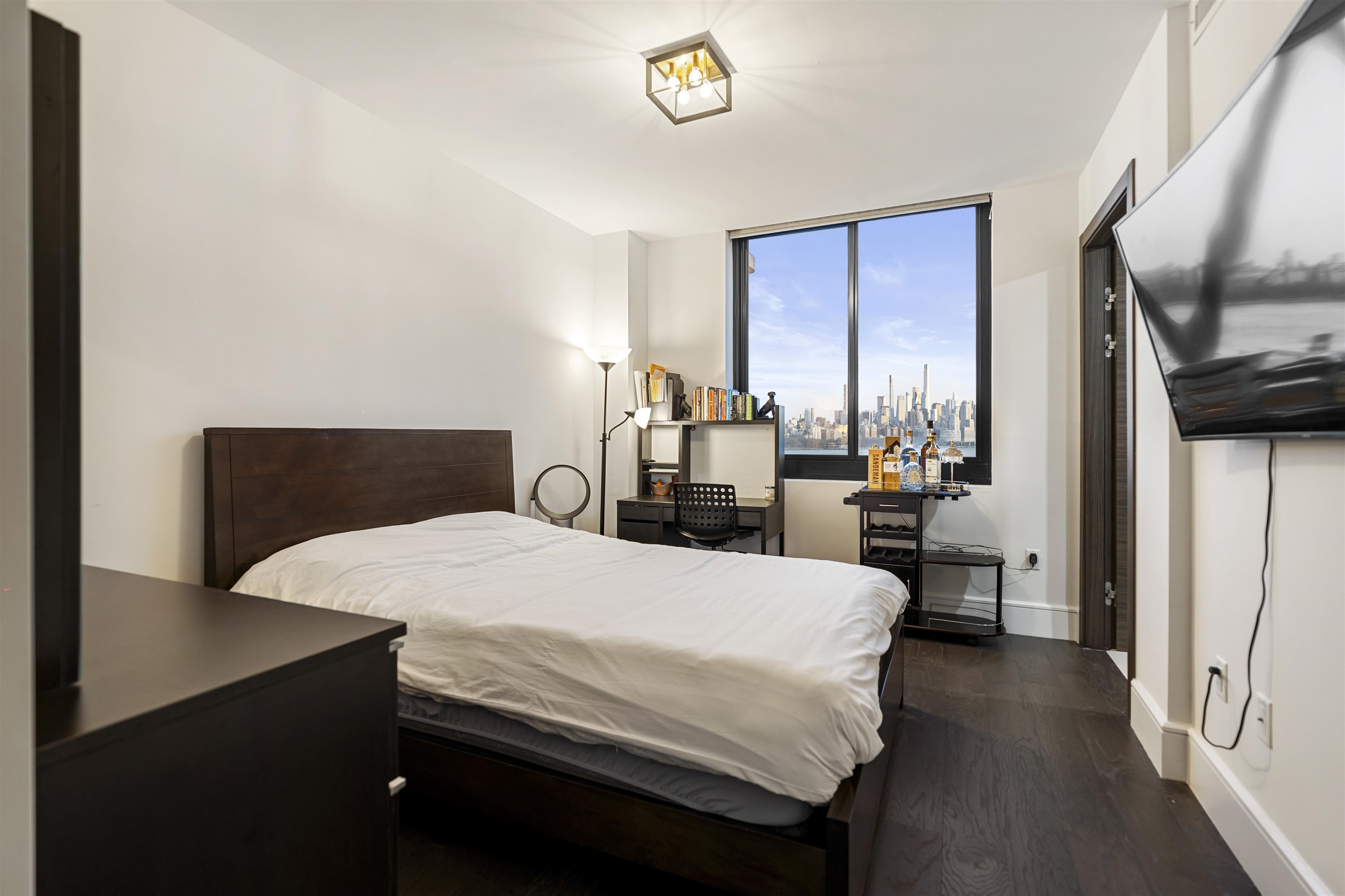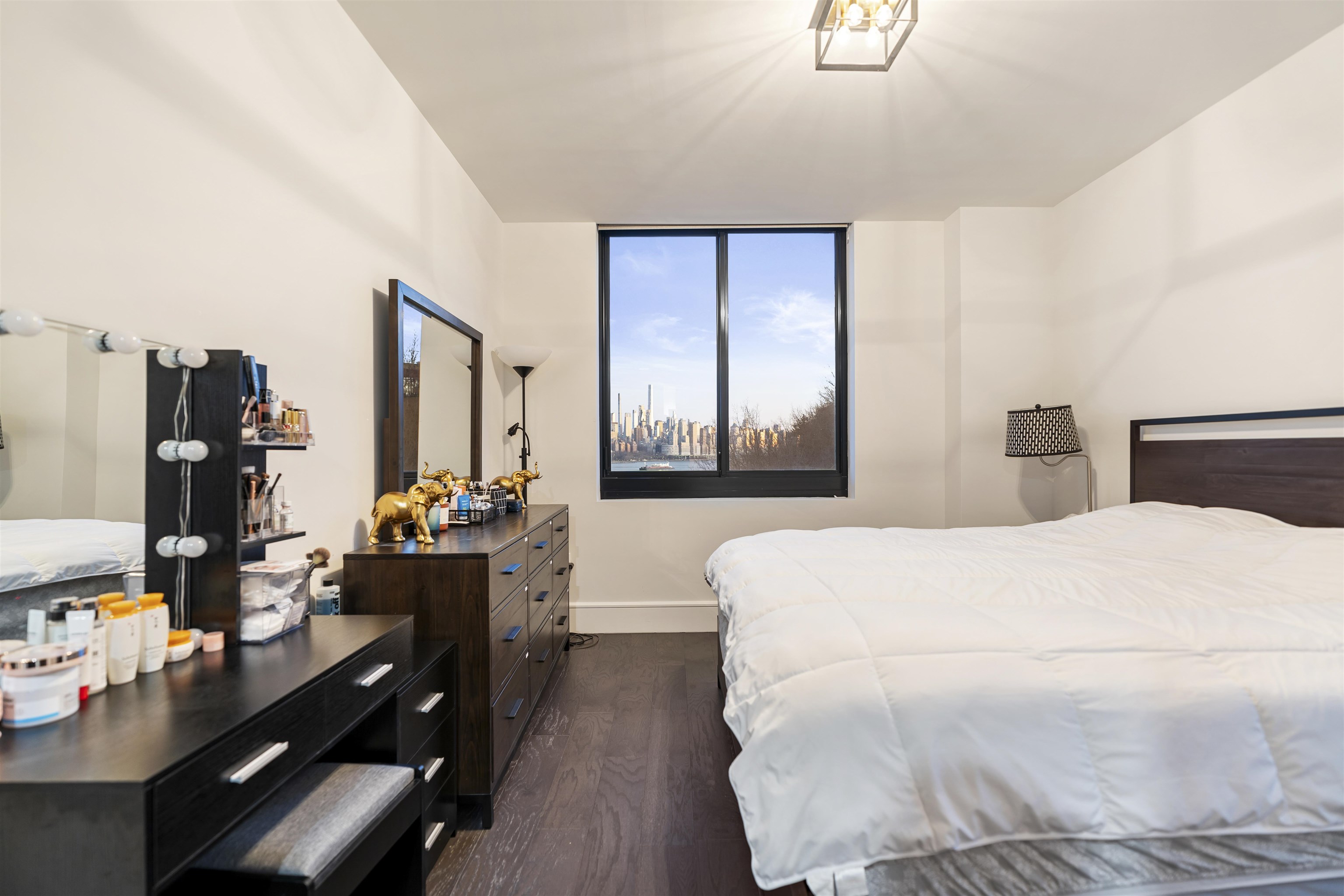 Luxury Living with Spectacular NYC Views at Solaia. Experience breathtaking luxury in this stunning 3-bedroom, 3-bathroom penthouse-style condo located on the 14th floor of Solaia (Right below PH level) . Designed for holistic, balanced living, this home offers sweeping views of New York City from a 55-foot wraparound balcony and dramatic floor-to-ceiling windows with upgraded automatic blinds throughout. The designer kitchen is a chef’s dream, featuring custom Italian cabinetry, SapienStone countertops, a waterfall island, and luxury appliances. The spacious primary bedroom retreat includes a custom closet and a luxurious en-suite bath with Seedwood tile feature walls and a soaking tub including premium bidet systems in all bathrooms. With 5 floors of wellness-focused amenities—such as a gym, yoga studio, spa with dry & steam saunas, Himalayan Salt Therapy, jetted vitality tub, residents lounge, and a rooftop deck with BBQs—this is more than just a home, it’s a lifestyle. Enjoy the convenience of 2 deeded indoor parking spaces and an unbeatable location near ferries to NYC from Port Imperial, the Hudson-Bergen Light Rail, and easy access to the GWB and Lincoln Tunnel. The Unit has been leased to a corporate transfer tenant until Dec 2028. Rent roll $8750 with increase to $9200. Buyer must be temporary investor.