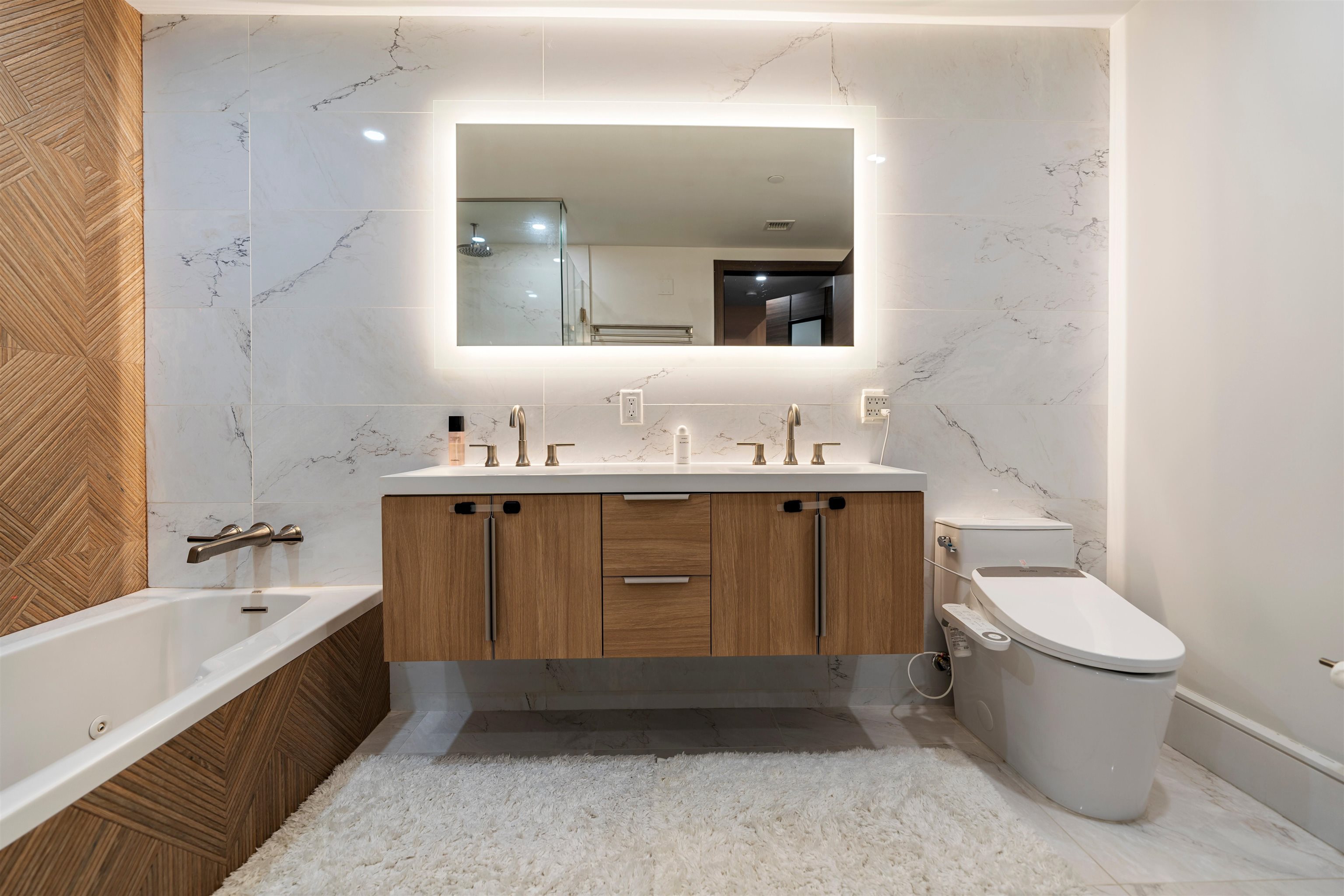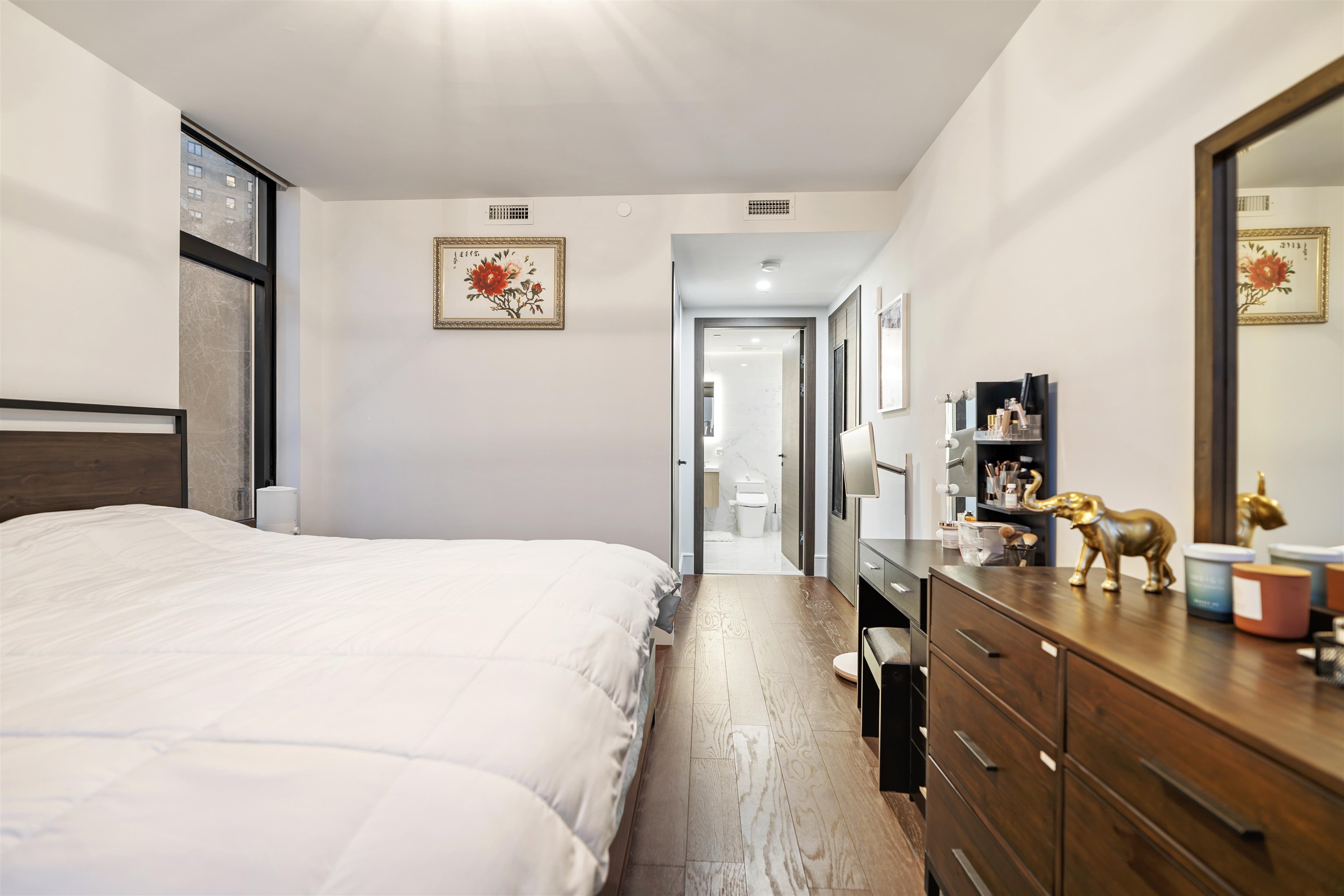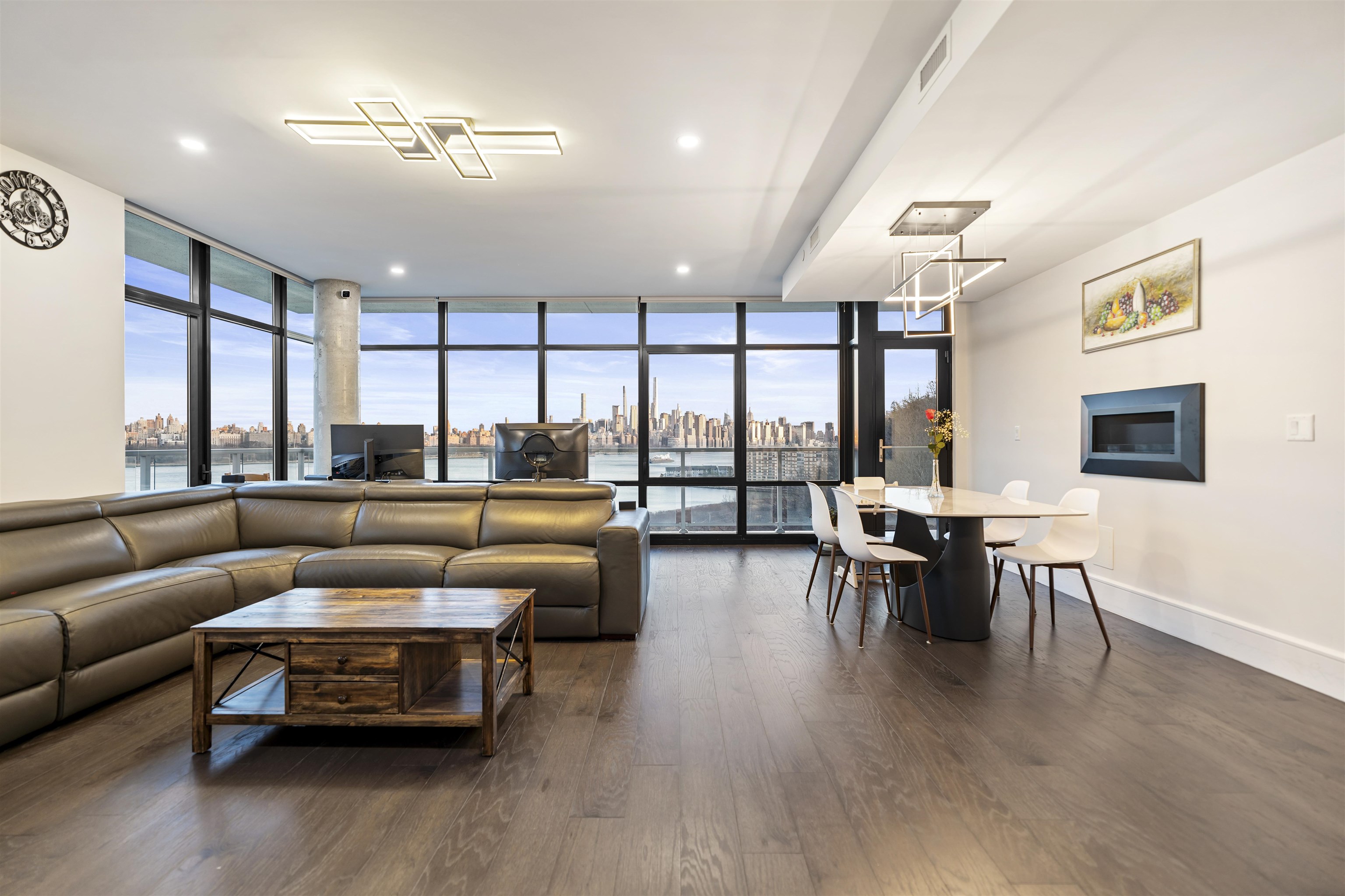 Luxury Living with Spectacular NYC Views at Solaia. Experience breathtaking luxury in this stunning 3-bedroom, 3-bathroom penthouse-style condo located on the 14th floor of Solaia (Right below PH level) . Designed for holistic, balanced living, this home offers sweeping views of New York City from a 55-foot wraparound balcony and dramatic floor-to-ceiling windows with upgraded automatic blinds throughout. The designer kitchen is a chef’s dream, featuring custom Italian cabinetry, SapienStone countertops, a waterfall island, and luxury appliances. The spacious primary bedroom retreat includes a custom closet and a luxurious en-suite bath with Seedwood tile feature walls and a soaking tub including premium bidet systems in all bathrooms. With 5 floors of wellness-focused amenities—such as a gym, yoga studio, spa with dry & steam saunas, Himalayan Salt Therapy, jetted vitality tub, residents lounge, and a rooftop deck with BBQs—this is more than just a home, it’s a lifestyle. Enjoy the convenience of 2 deeded indoor parking spaces and an unbeatable location near ferries to NYC from Port Imperial, the Hudson-Bergen Light Rail, and easy access to the GWB and Lincoln Tunnel. The Unit has been leased to a corporate transfer tenant until Dec 2028. Rent roll $8750 with increase to $9200. Buyer must be temporary investor.