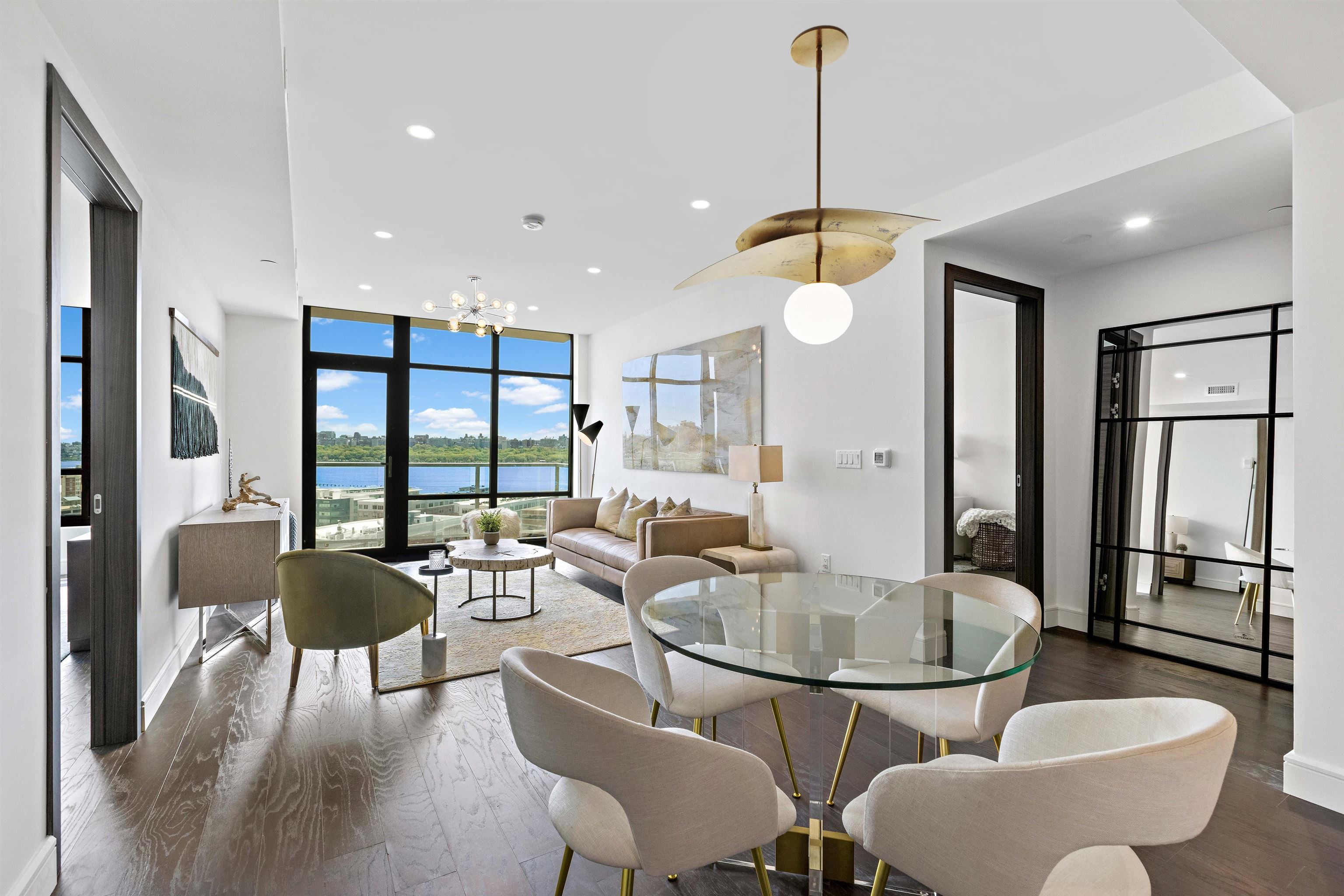 Ideally situated between Edgewater and Weehawken with stunning views of the Hudson River and Manhattan skyline, each of Solaia’s spacious east-facing residences features expansive, double-pane windows, dark espresso flooring, custom closets and living rooms with gas fireplaces. Chef-inspired kitchens boast custom Italian cabinetry, SapienStone countertops with waterfall islands, and stainless steel GE Café Series smart appliances. En-suite five-fixture baths flaunt Seedwood tile feature walls and freestanding tubs for a spa-like experience. Smart lights, thermostats, and Latch keyless entry, along with an in-home, full-size washer and dryer, make life here as convenient as possible. Each home includes one deeded garage parking spot with additional parking available for purchase. The 10,000 sq. ft. of amenities include a three-story wellness center with a yoga room, TRX equipment, boxing space, a steam room, sauna, rainfall shower, a Himalayan salt inhalation therapy room with infrared relaxation beds, a jetted vitality tub, and a dressing room with personalized lockers. There’s also a cliffside roof deck with a custom outdoor demonstration kitchen, BBQs, dining areas, firepits, and lounge seating, along with a co-working space, resident lounge with fireplace, billiards and ping pong, a demonstration and event space, and a dog run. Solaia is located in North Bergen, just moments away from the George Washington Bridge, Lincoln Tunnel, Hudson Bergen Light Rail, and NY Waterway Port Imperial Ferry Terminal, as well as near an abundance of shopping, grocery and nearby attractions.