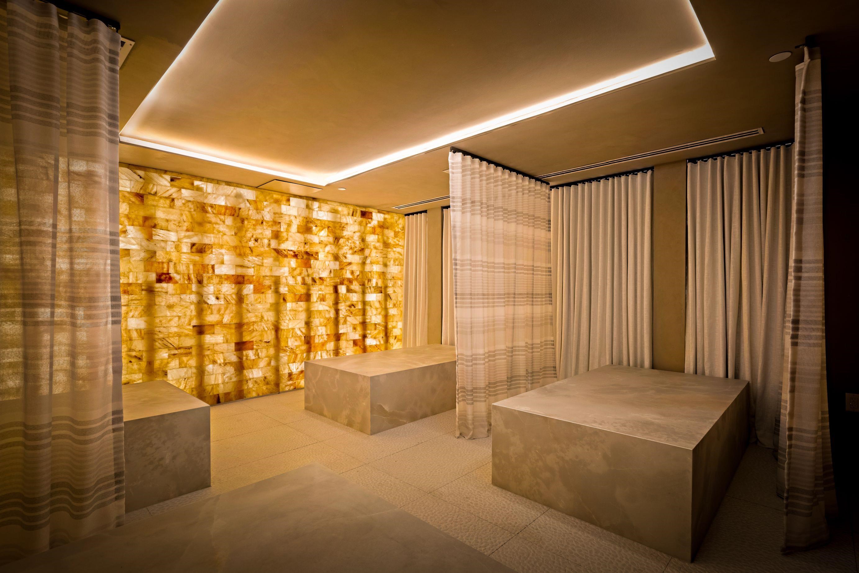 Ideally situated between Edgewater and Weehawken with stunning views of the Hudson River and Manhattan skyline, each of Solaia’s spacious east-facing residences features expansive, double-pane windows, dark espresso flooring, custom closets and living rooms with gas fireplaces. Chef-inspired kitchens boast custom Italian cabinetry, SapienStone countertops with waterfall islands, and stainless steel GE Café Series smart appliances. En-suite five-fixture baths flaunt Seedwood tile feature walls and freestanding tubs for a spa-like experience. Smart lights, thermostats, and Latch keyless entry, along with an in-home, full-size washer and dryer, make life here as convenient as possible. Each home includes one deeded garage parking spot with additional parking available for purchase. The 10,000 sq. ft. of amenities include a three-story wellness center with a yoga room, TRX equipment, boxing space, a steam room, sauna, rainfall shower, a Himalayan salt inhalation therapy room with infrared relaxation beds, a jetted vitality tub, and a dressing room with personalized lockers. There’s also a cliffside roof deck with a custom outdoor demonstration kitchen, BBQs, dining areas, firepits, and lounge seating, along with a co-working space, resident lounge with fireplace, billiards and ping pong, a demonstration and event space, and a dog run. Solaia is located in North Bergen, just moments away from the George Washington Bridge, Lincoln Tunnel, Hudson Bergen Light Rail, and NY Waterway Port Imperial Ferry Terminal, as well as near an abundance of shopping, grocery and nearby attractions.