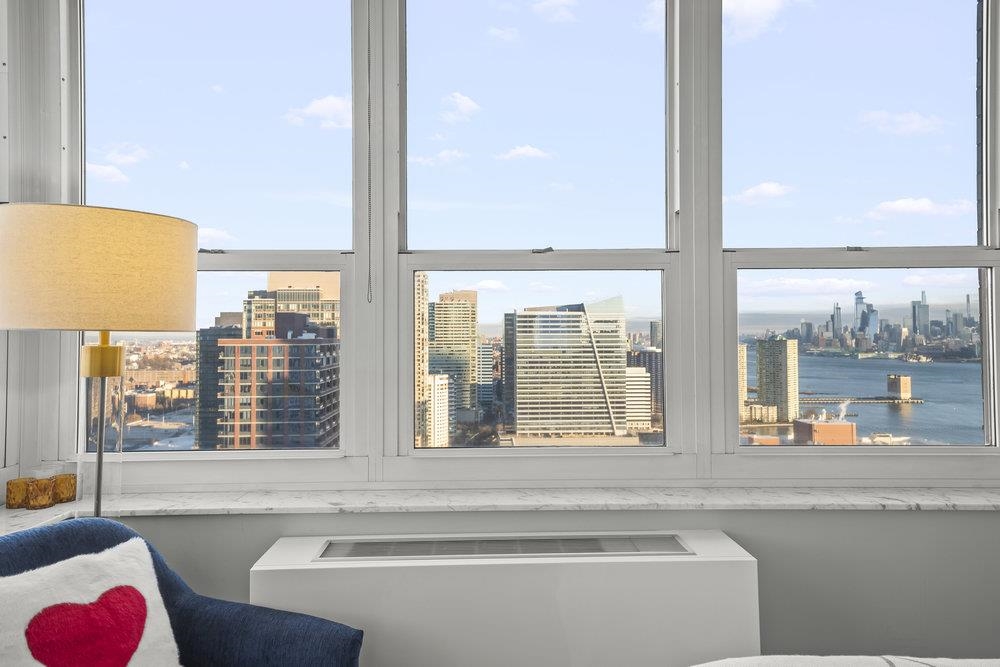 Experience the pinnacle of premium urban living in this sun-drenched, meticulously upgraded 02-line corner unit, widely regarded as one of the most coveted layouts in the entire area, not just within 88 Morgan Street. This residence is defined by its breathtaking, protected views of Midtown Manhattan and the city skyline, perfectly framed by six oversized windows, capturing the rare and highly sought-after East, North, and West exposures for abundant natural light throughout the day. Move right into a home where nearly every detail has been thoughtfully enhanced. The generous living space features gleaming hardwood floors throughout and benefits from significant upgrades completed in 2017, offering lasting quality and style. These enhancements include custom closets and custom window blinds, alongside new recessed lighting and ceiling lights for bright, modern illumination. The bathroom was fully remodeled at that time, now boasting new designer tiles, a vanity sink with a marble top, a frameless three-door medicine cabinet, and a new toilet, complemented by elegant marble window sills. For ultimate convenience, a stackable washer/dryer is included in the unit. The dishwasher was replaced in 2021. The 88 Morgan Street lifestyle is one of effortless, full-service luxury. The building ensures peace of mind with a 24-hour concierge, dedicated doorman, and an on-site super. Residents enjoy access to an incredible 41,000 square feet of amenity space, which was newly renovated in 2019. The comprehensive amenity package is one of the area’s best, designed to cater to every need; it includes a state-of-the-art gym, a heated outdoor pool, jacuzzi, dry and wet saunas, outdoor cabanas, a fire pit, and BBQ grills for outdoor enjoyment. Inside, residents can utilize the luxurious lounge, business bar, media room, game room, children’s playground, a golf simulator, billiard room, and a ping pong room, all featuring rich Italian marble and custom lighting. Your daily life becomes effortless here due to the superb downtown location, which offers unmatched convenience. Whole Foods is just one block away, with Harborside Park, ShopRite, and various dining options within easy reach. Commuting is a breeze, as the Ferry to NYC, Exchange Place & Grove PATH stations, and the Harborside Light Rail Station are all right at your doorstep. For immediate access, CVS, CycleBar, and a café are also located directly on premises. Garage parking is available for rent at $290 per month.