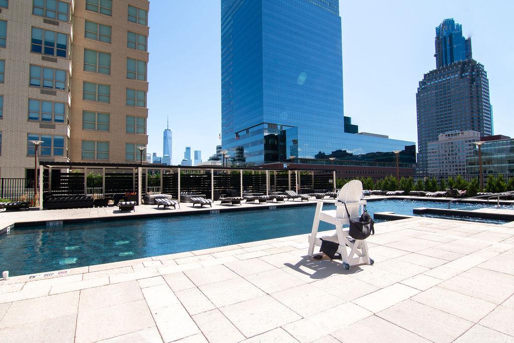 Luxury Living! Stunning 2 bedroom/ 2 bath, 1182 Sq. Ft unit on the on 45th floor with NYC views and river views. Unit includes open layout, 10ft ceilings, and SS appliances. Full service waterfront building! List of amenities include: 24 hour concierge and doorman, Spa with Jacuzzi, Steam Room, Sauna, Modern Gym, Business center, Kids Play Room, Swimming Pool and more! Path & ferry to NYC at your doorstep. Close to PATH, shopping, LIGHTRAIL, restaurants, and nightlife!
