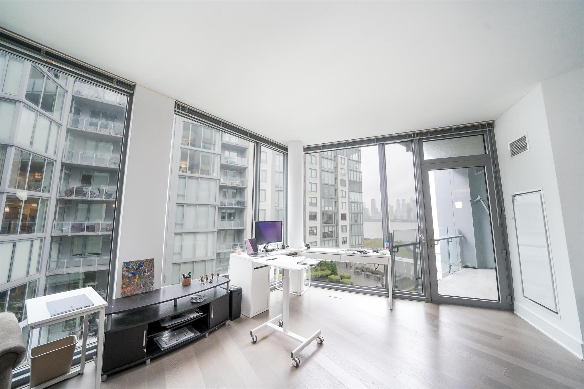 Welcome to Nine on the Hudson—where modern luxury meets effortless style along the breathtaking Hudson River. This stunning 5th-floor residence spans approximately 1,395 sq. ft. and offers an exceptional layout featuring 2 bedrooms, 2 bathrooms, and a versatile den that easily transforms into a home office, formal dining area, or guest bedroom. Step inside and feel the difference—an open, light-filled floor plan highlighted by wall-to-wall hardwood flooring, a chef’s kitchen with sleek quartz countertops, and top-tier finishes throughout. The primary suite features a spa-inspired marble bathroom, while your private balcony frames captivating skyline views of New York City—perfect for morning coffee or sunset unwinding. Nine on the Hudson redefines luxury living with world-class amenities including a 24-hour concierge, two-story fitness center, sauna, infinity-edge pool, hot tub, and a vibrant rooftop lounge complete with fire pits and panoramic city views. Enjoy resort-style features like BBQ areas, a resident lounge, and a playroom designed for every lifestyle. Located in the heart of the Gold Coast, just minutes from Manhattan via ferry or PATH, this residence offers the ultimate blend of luxury, convenience, and community. Live the lifestyle you’ve imagined—schedule your private tour today and experience why Nine on the Hudson is one of the most coveted addresses on the waterfront.