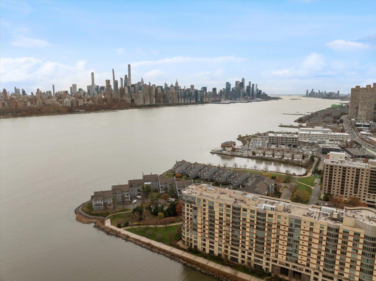 A rare waterfront duplex in Roc Harbour with a private in-unit elevator and unobstructed views of the Hudson River, Midtown Manhattan, and the George Washington Bridge. Homes with this view and layout rarely come to market. You get more than twenty-six hundred square feet across two levels with multiple outdoor spaces facing the river and the skyline. The main level opens to a bright living and dining area with direct river and Midtown views. The terrace extends the interior space and offers a strong private vantage point along the waterfront. The upper level centers on a large primary suite with panoramic exposures from Midtown to the George Washington Bridge. The primary bath includes clear views of the bridge. Two additional bedrooms and a full bath complete the top floor. Roc Harbour is a gated waterfront community with convenient access to Edgewater, Weehawken, and transit options into Manhattan through the Lincoln Tunnel or the George Washington Bridge. The rare combination of a private elevator, a true two-level layout, usable outdoor space, and direct views of Midtown and the bridge sets this property apart. Listings with this mix of features and these views are limited, which makes this home a standout in the Hudson River market.
