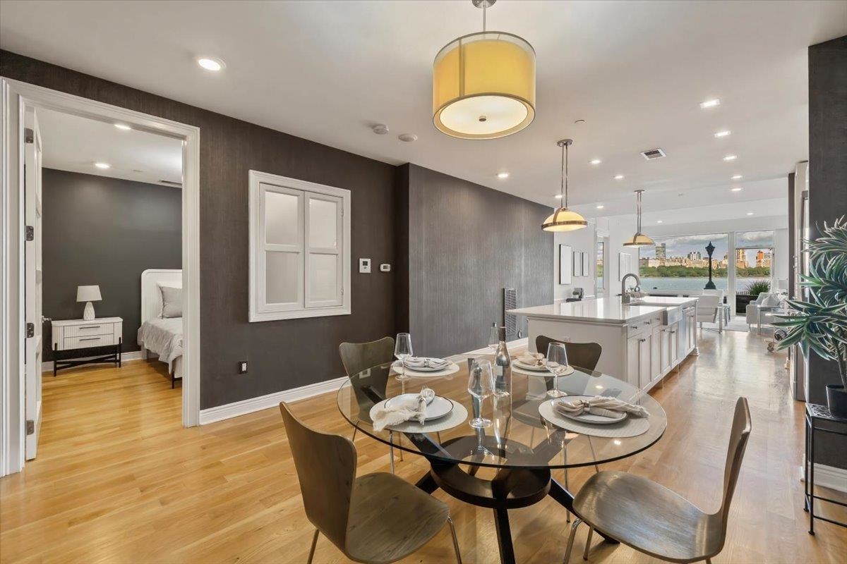 This is a RARE, UNIQUE find! Explore the VIRTUAL TOUR! Differentiators: ~1,467 sqft with UNOBSTRUCTED waterfront view, large terrace, 2 assigned parking spots, 3 bus routes ( (158, 159R, 156R) to Port Authority, 10 minutes busing to light rail and ferry. Welcome to The Pearl, Edgewater’s prestigious luxury building. Spanning a generous 1,467 square feet approximately, this residence offers an expansive and bright living space, meticulously designed for ultimate comfort and elegance. Natural light floods the unit through floor-to-ceiling windows, perfectly framing your private, unobstructed panorama of the iconic Manhattan skyline. Adding to the allure is the remarkably large private balcony, an exceptional extension of your living area. The gourmet kitchen is a chef’s dream, appointed with high-end Bosch appliances, sleek Caesarstone countertops, and custom cabinetry. Residents of The Pearl enjoy an unparalleled suite of amenities, including a fitness center, state-of-the-art outdoor pool, resident lounge, skyline rooftop, and 24/7 concierge service. Commuting is a breeze by the NY Waterway Ferry, offering an express 8-minute ride to Midtown Manhattan, along with easy access to three bus routes (158, 159R, 156R) to the Port Authority and Hudson Bergen Light Rail. Adding to the convenience, this unit comes complete with two assigned parking spots, a highly sought-after feature. Beyond The Pearl, Edgewater thrives as a vibrant and well-appointed community. Residents have easy access to an abundance of everyday conveniences and diverse shopping options. Grocery stores like Whole Foods Market, Trader Joe’s, and Mitsuwa are just a short drive away. Furthermore, Edgewater’s proximity to Fort Lee, just a few minutes’ drive away, expands dining and shopping opportunities even further. Don’t miss this extraordinary chance to own a piece of the coveted Edgewater waterfront, where luxury, unparalleled convenience, and an awe-inspiring view converge.