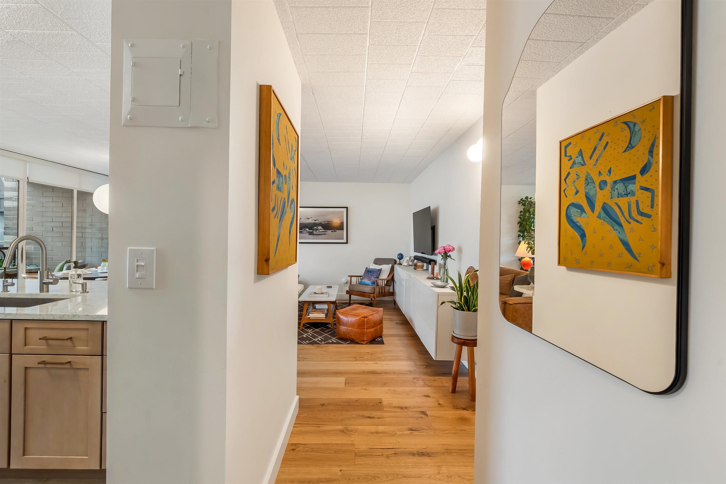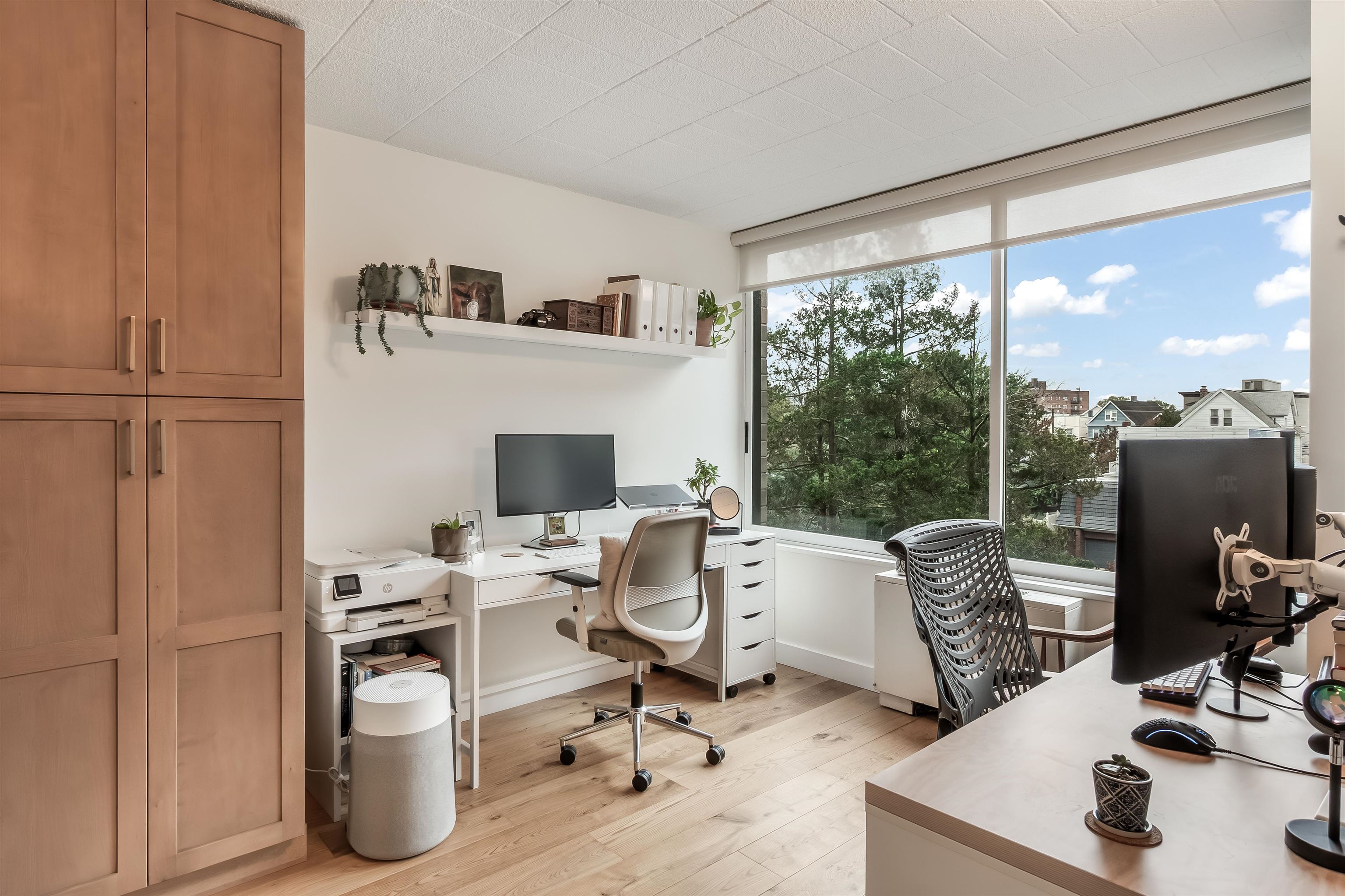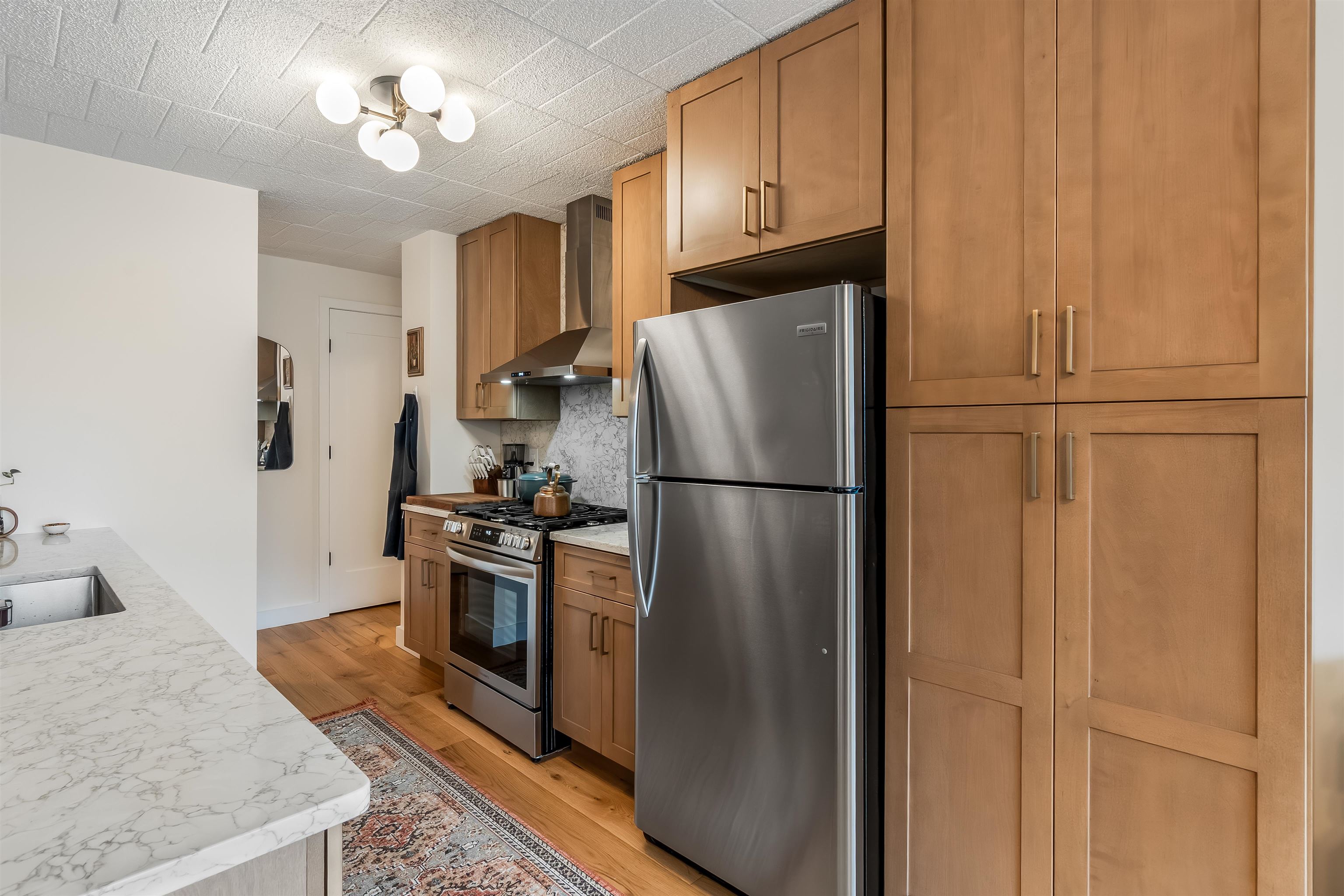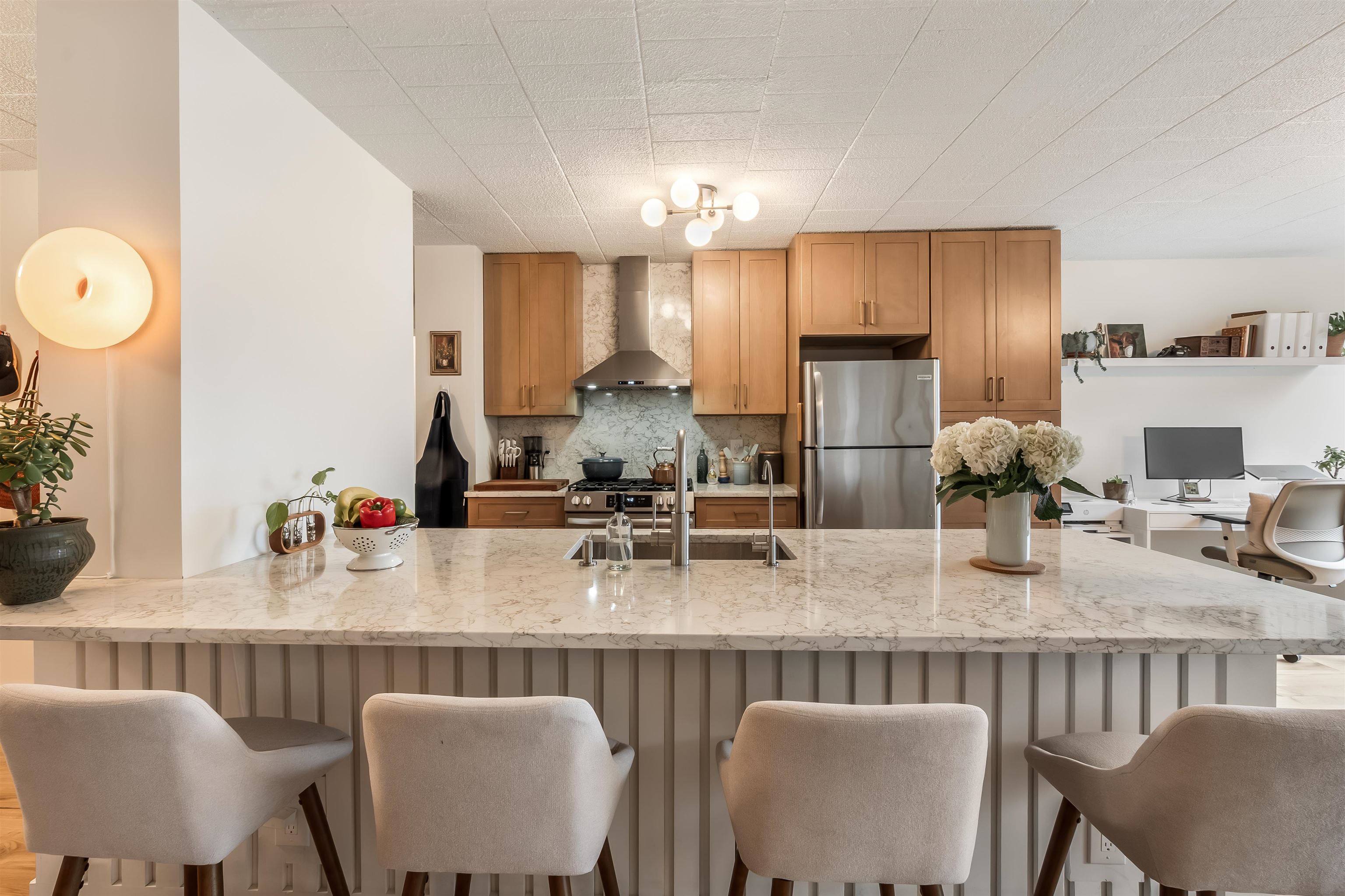 Beautifully Renovated Oversized 1-Bedroom at The Park Hudson Condominiums. Welcome to this stunning, newly renovated one-bedroom, one-bathroom home in the highly sought-after Park Hudson Condominiums. Fully move-in ready, this residence offers refined finishes and a thoughtful layout designed to impress even the most discerning buyer. The chef-inspired kitchen is perfect for both cooking and entertaining, featuring updated stainless steel appliances, designer cabinetry, and a generous kitchen island with sleek quartz countertops. The open-concept floor plan flows seamlessly into a spacious living and dining area, providing plenty of room for relaxation or a dedicated work-from-home space. Throughout the home, you’ll find wide plank flooring, elegant custom baseboards and millwork, and an abundance of natural light. Step out onto your private balcony, ideal for morning coffee or al-fresco dining with friends. The primary bedroom includes a custom walk-in closet with ample storage, while the spa-like bathroom features a walk-in shower, floor-to-ceiling tile, and a modern vanity with marble top. Residents of The Park Hudson enjoy a full suite of amenities, including a 24-hour concierge, fitness center, on-site laundry facilities, and an outdoor swimming pool with breathtaking views of the New York City skyline. All utilities and use of amenities are included in the monthly HOA fee, and on-site parking is available for rent at just $125 per month. Ideally located just steps from NYC transportation (approximately 30 minutes to Manhattan), James J. Braddock Park, and a diverse selection of restaurants, cafés, and shops, this home perfectly combines luxury, convenience, and lifestyle. Don’t miss this rare opportunity to own a beautifully updated home in one of North Bergen’s premier buildings.