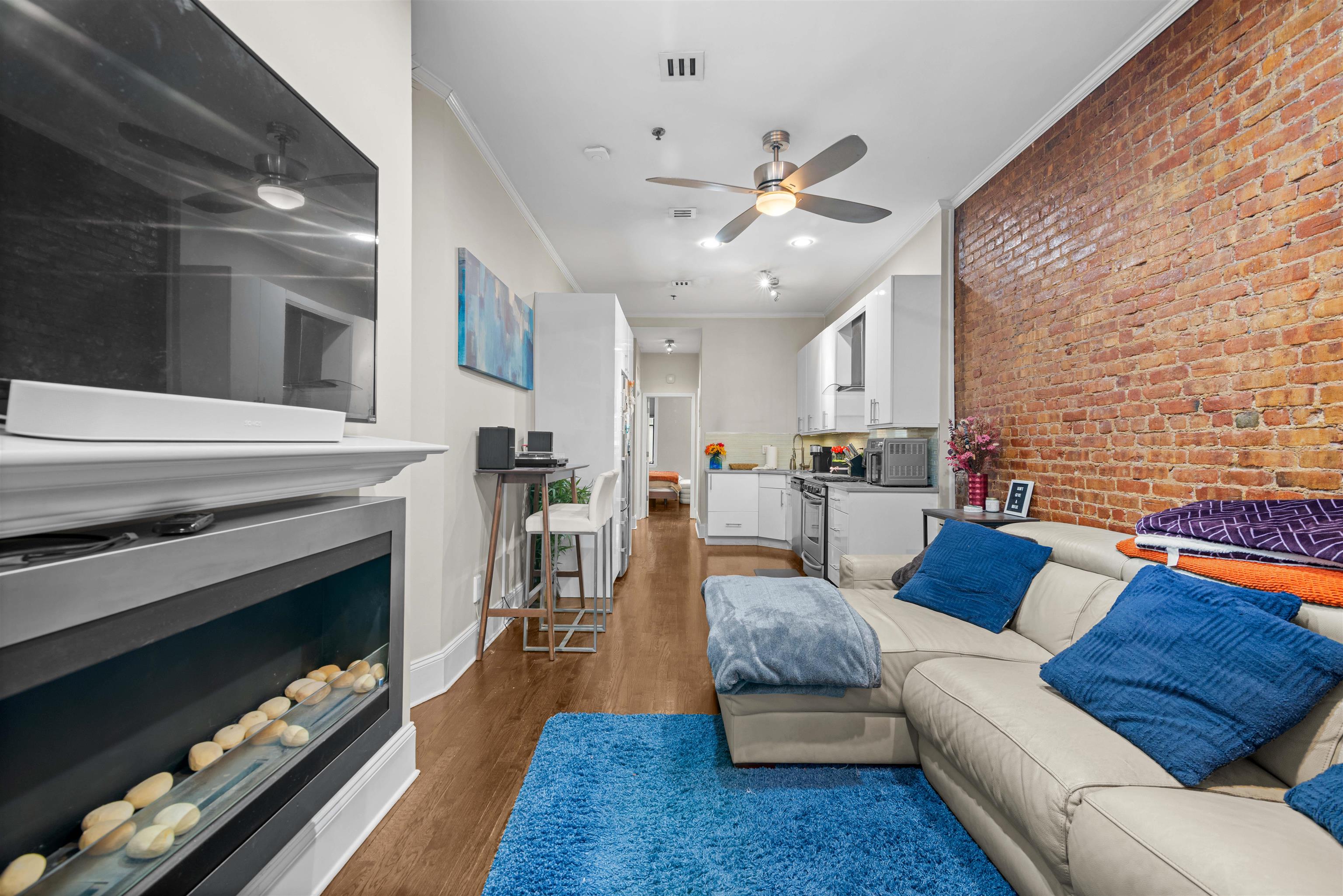 Welcome to your dream home in the heart of Hoboken, featuring a rare PRIVATE BACKYARD oasis perfect for entertaining with a firepit, TV, and plenty of space for dining and lounging. Inside, the chef’s kitchen impresses with 42″ cabinets, quartz countertops, stainless steel appliances, and a hooded range that will delight any cook. The inviting living room boasts beautiful exposed brick and gleaming hardwood floors, while the bathroom offers a spa-like retreat with a double vanity and oversized tub/shower. High 9’8″ ceilings, a walk-in closet, central air, laundry directly below the unit, and private storage ensure modern comfort. Perfectly located near NJ Transit buses to Port Authority and Hoboken Terminal, plus the NY Waterway Ferry. Just steps to Columbus Square Park, Washington Street, the Hudson River Waterfront Walkway, parking garages, restaurants, nightlife, shopping, schools, and more. Don’t miss this rare opportunity!
