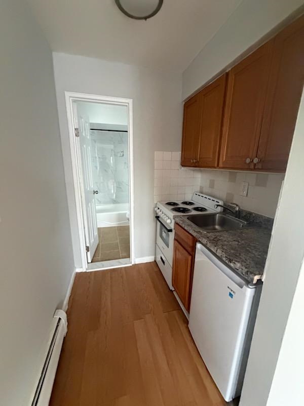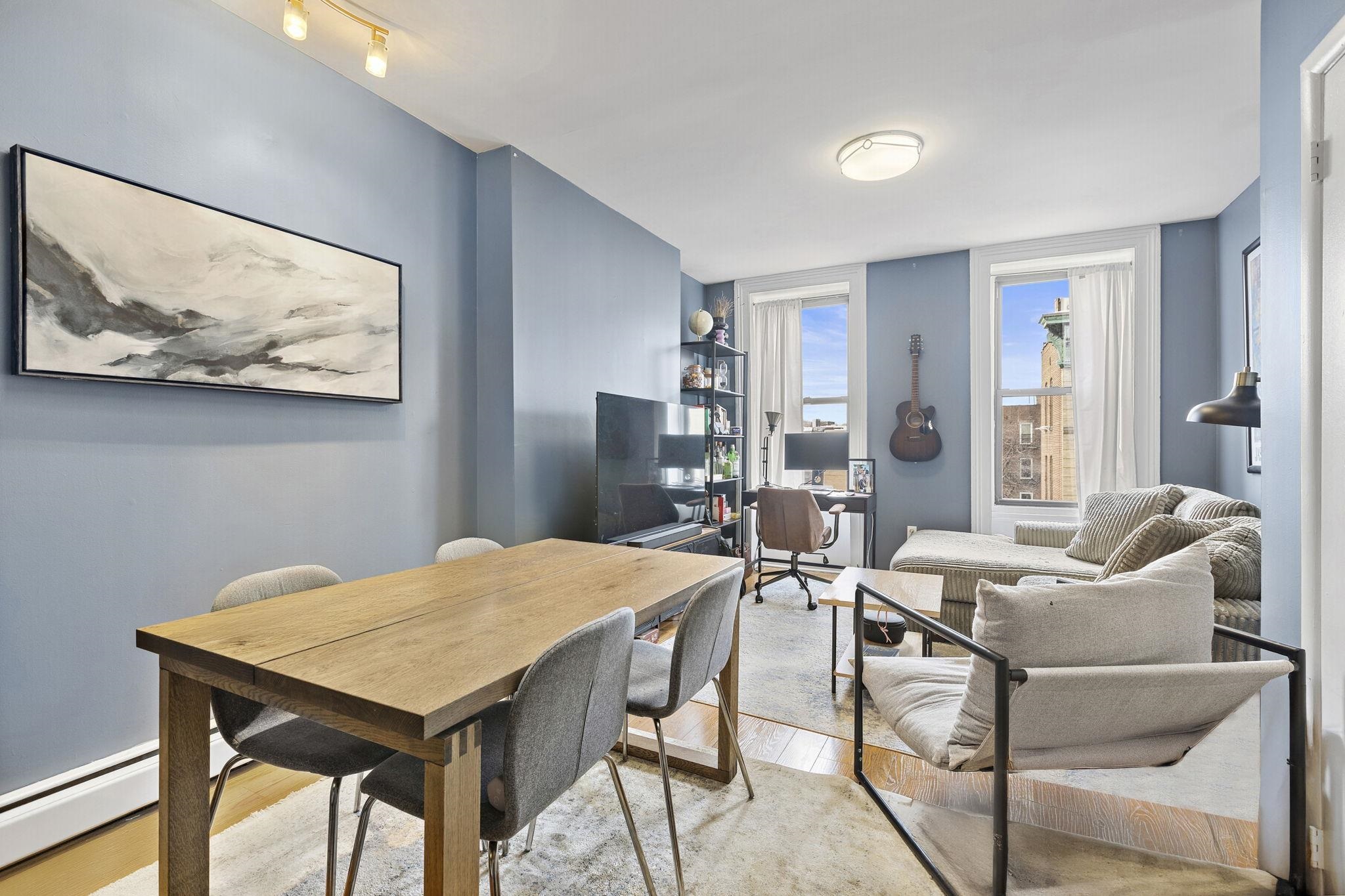 Welcome to 935 Park Ave #5S—a sunlit 1BR/1BA featuring hardwood floors and in-unit laundry. The open layout flows effortlessly, with a spacious bedroom and ample closet space. Enjoy access to a shared backyard, all on a quiet, tree-lined street just moments from shops, parks, restaurants, and NYC transit. A perfect mix of charm and modern convenience.