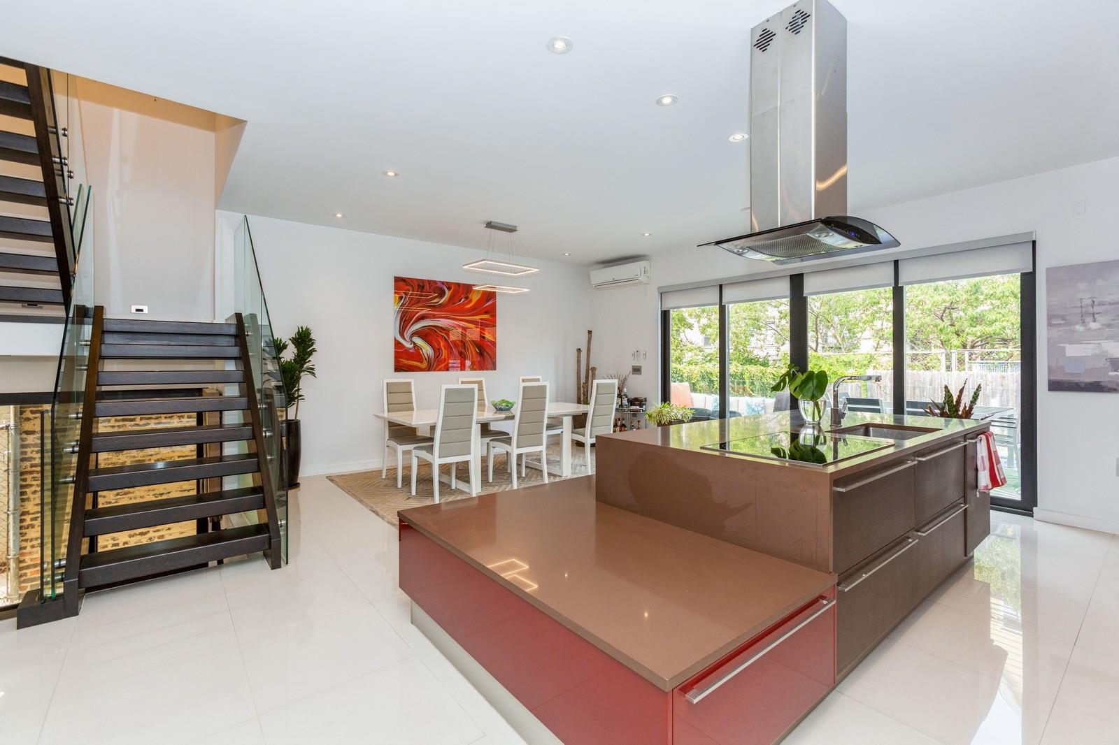 Welcome to this beautifully semi-furnished 3BD/3.5BA home with PRIVATE POOL offering three levels of refined living space with high-end finishes throughout, nestled in one of Weehawken’s most desirable neighborhoods, just ten minutes from New York City. The open-concept layout features sleek porcelain tile floors and a designer kitchen equipped with Miele concealed appliances, a spacious center island with seating ideal for entertaining, and a striking contemporary staircase encased in glass railings connecting all three levels. Floor-to-ceiling glass sliding doors lead to an expansive deck with a retractable awning overlooking an inviting in-ground pool. Upstairs, the second floor offers three bedrooms, a common bathroom and a laundry room. The primary bedroom boasts a luxurious retreat — complete with a spacious bathroom featuring a shower and double vanity, a generous walk-in closet, and direct access to a large private balcony for those morning coffees. The fully finished basement provides a cozy retreat with a wet bar, media room featuring a home theater projection system, recreation and exercise rooms, a full bath, a utility room and generous storage. Additional highlights include radiant heating, LED lighting, Nest thermostats, security cameras, a video intercom, heated towel racks, brand new split AC units on the main floor and automated blinds. A bus stop with buses to NYC is just two blocks away, and an assigned parking space is included (at additional cost of $150/month) in a gated lot across the street. This exceptional home is truly a must-see.