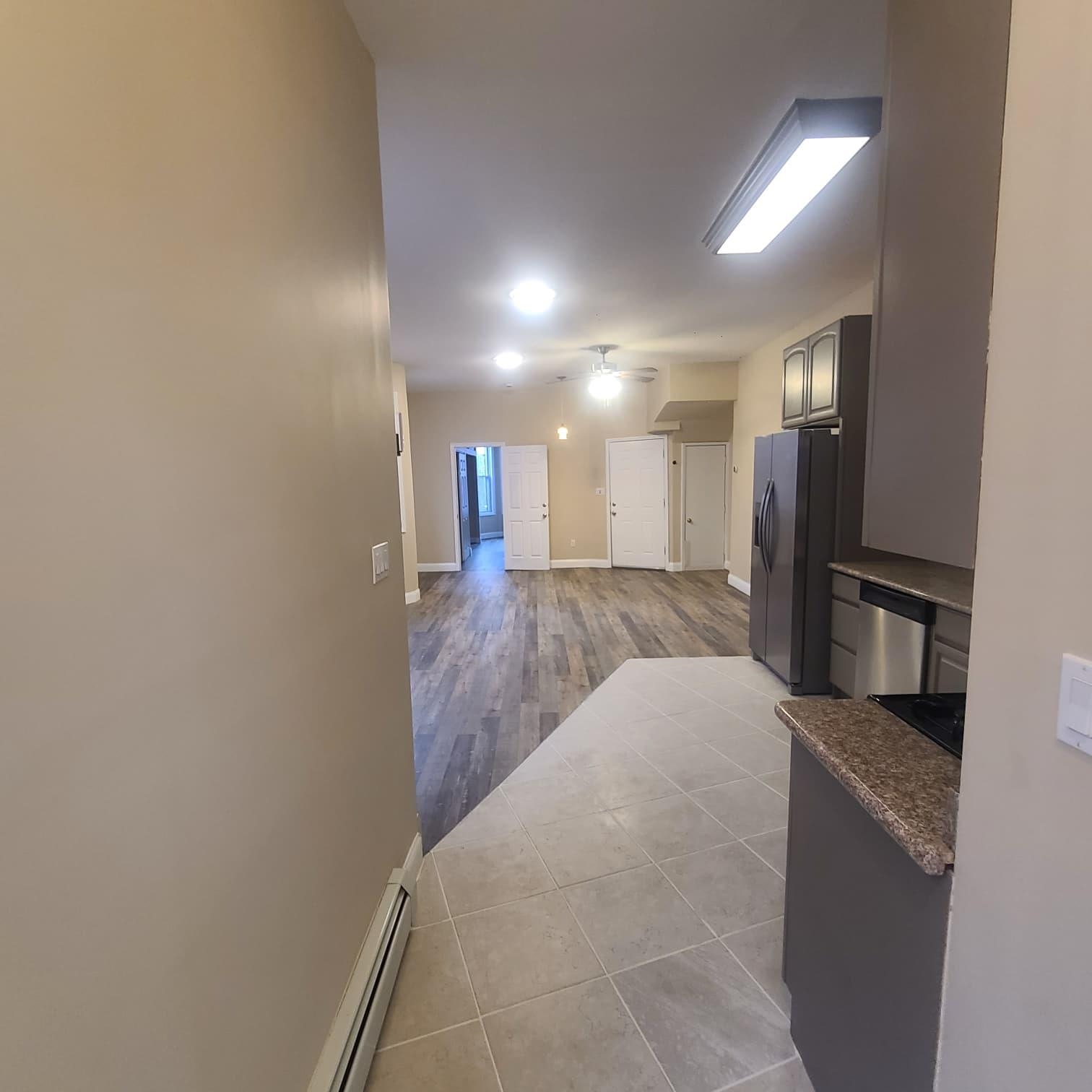 Conveniently located one spacious bedroom apartment. newly renovated, beautiful kitchen with lots of cabinets, stain steel appliances, hardwood floors, washer and dryer hook in the apartment and a private back yard, excellent location with easy proximity to light Rail station & NJ commute transportation, Surrounded by many great restaurants and shops!