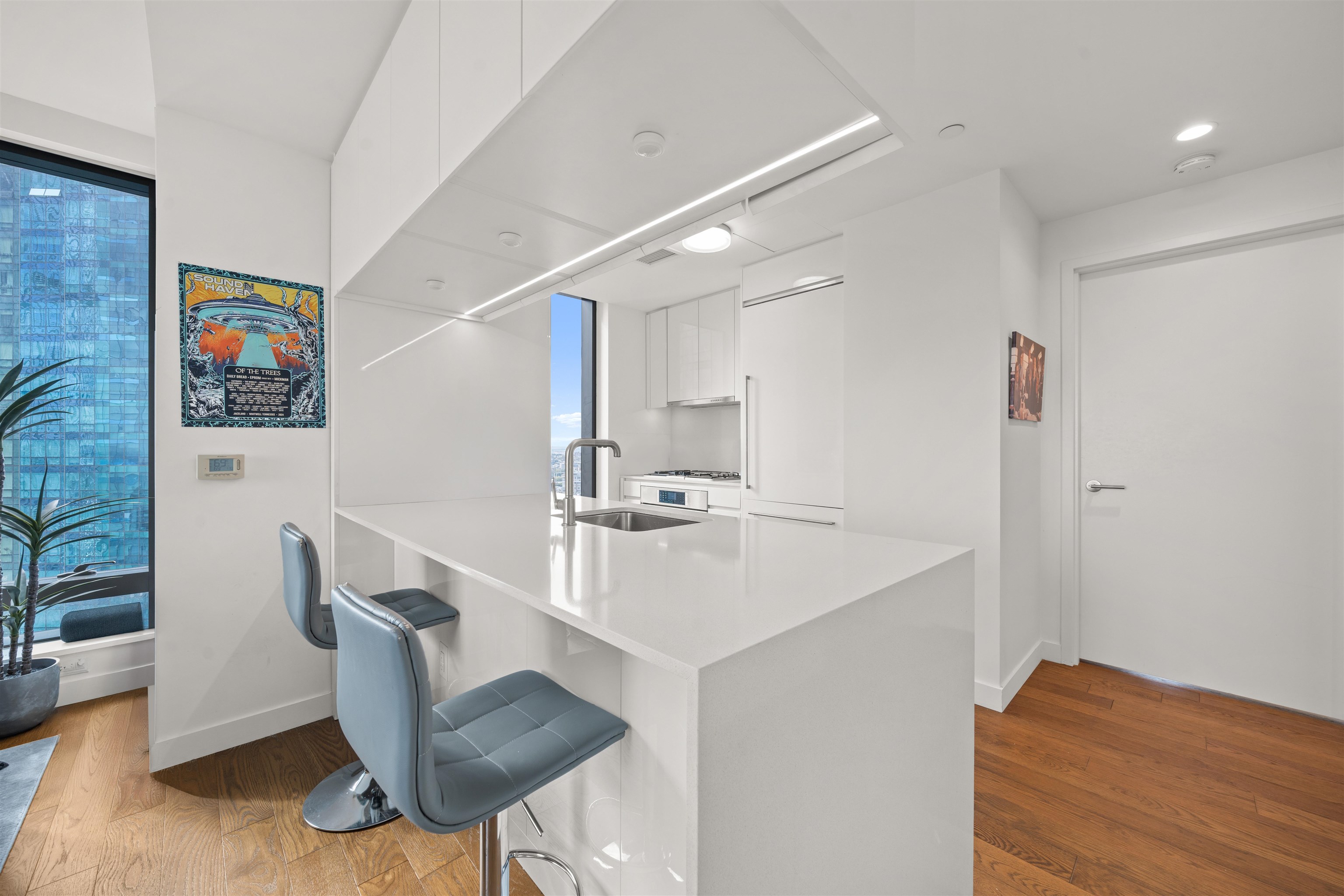 Welcome to 99 Hudson, the crown jewel of Jersey City’s waterfront and the tallest residential tower in New Jersey. This 839-square-foot corner one-bedroom, one-bath residence blends elevated design with peaceful, light-filled living in one of the Gold Coast’s most iconic addresses. Perched high above the city, this quiet, northwest-facing home offers sweeping views of the Hudson River and soft, glowing sunsets through expansive floor-to-ceiling windows. Inside, the open-concept layout is a study in sophisticated simplicity, where clean lines, generous proportions, and refined finishes come together to create a space that feels serene yet striking. The kitchen features custom Italian lacquer cabinetry, quartz countertops, premium stainless steel appliances, and a vented hood. It’s ideal for both daily living and elevated entertaining. The spacious bedroom is wrapped in corner windows that flood the space with natural light, while the spa-inspired bath includes designer fixtures and floor-to-ceiling tile. Additional highlights include 10-foot ceilings, 5-inch oak hardwood floors, and a Bosch washer and dryer. Peacefully tucked away from the bustle yet moments from it all, this residence offers access to over 65,000 square feet of resort-style amenities, including an 80’ x 50’ pool with cabanas, landscaped lawns, grilling areas, a dog run, fitness center, golf simulator, hot tub, sauna, library, and multiple resident lounges. Located just a couple of blocks from the PATH, ferry, and light rail and close to Whole Foods, waterfront parks, and top-tier shopping and dining, 99 Hudson delivers effortless access to both Manhattan and the best of Jersey City. Parking may be available for rent.